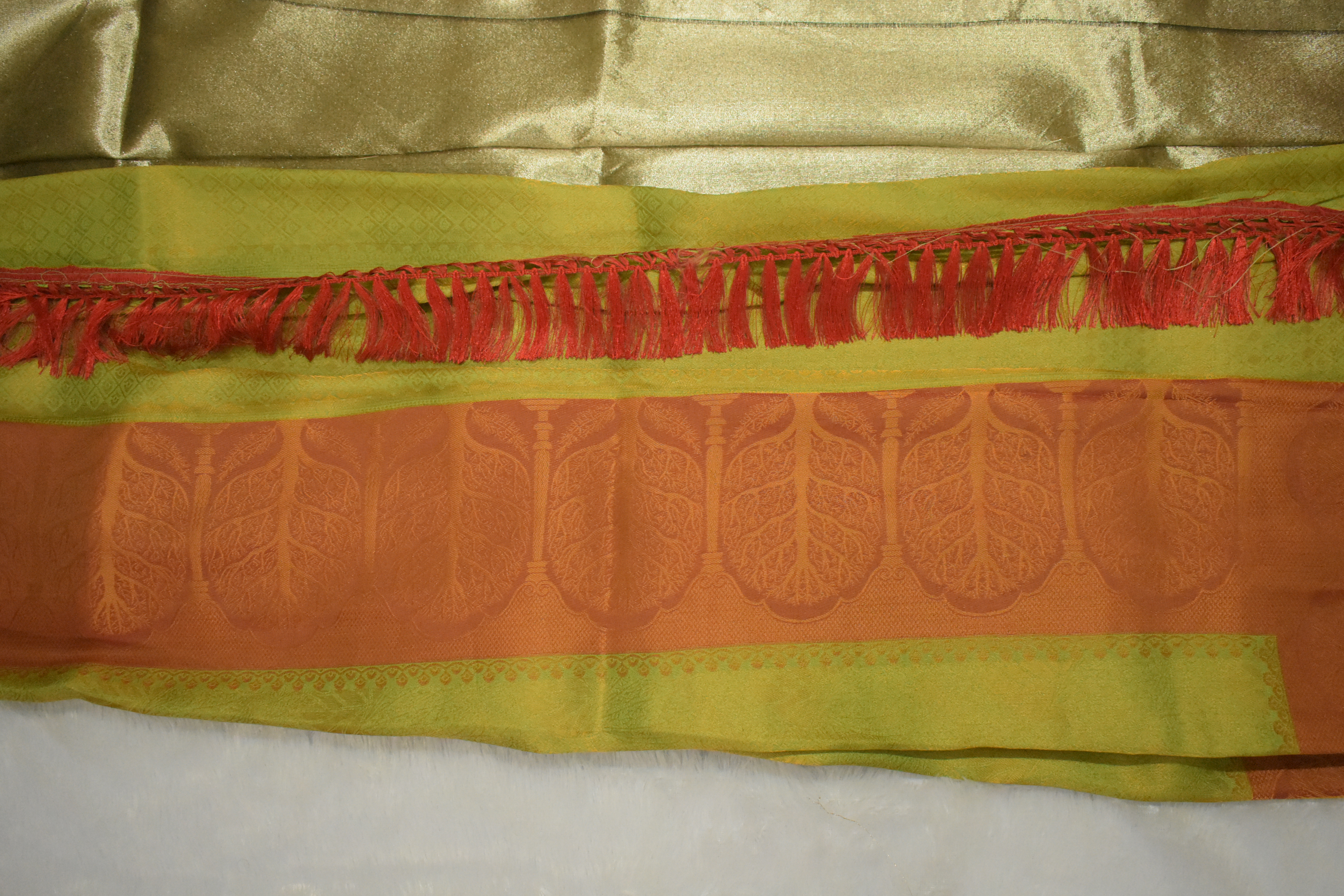 Kanchipuram Silk Saree Contrast Border Zari Woven Partywear Green Orange