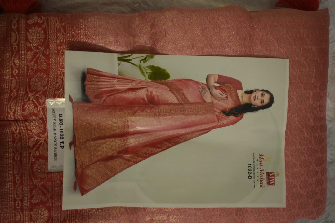 Softy Silk Saree with Zari Border for Wedding Partywear Peach Pink with Blouse