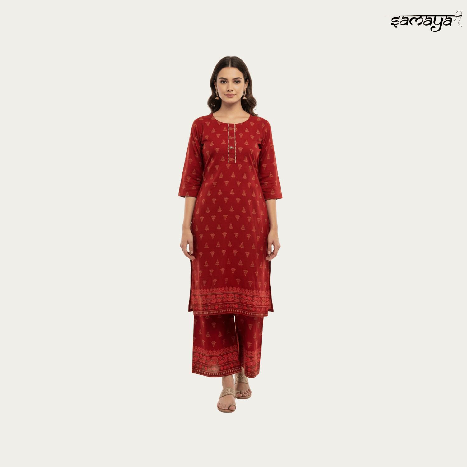 Maroon Printed Cotton Kurti Set Ethnic Festive Wear