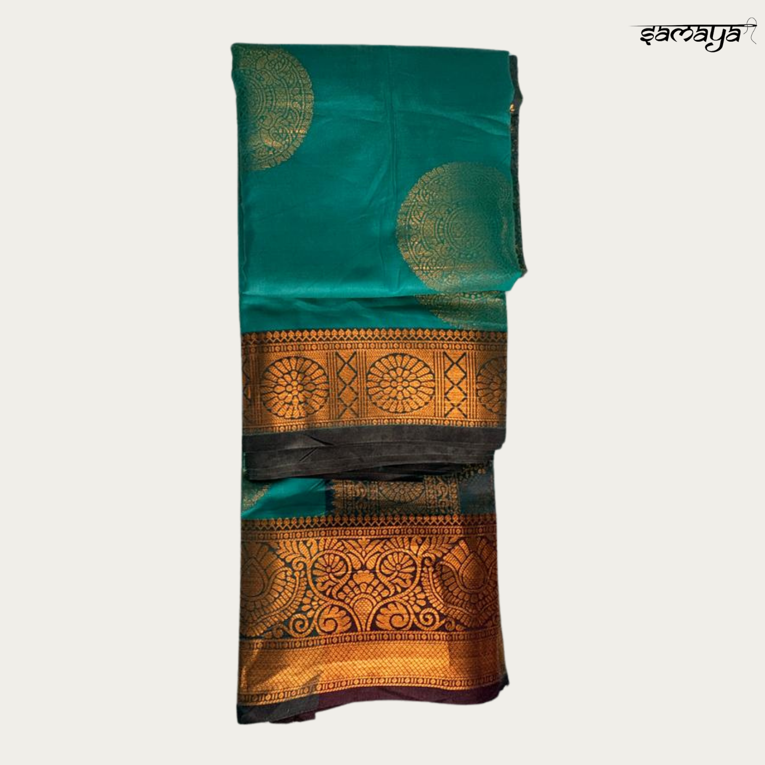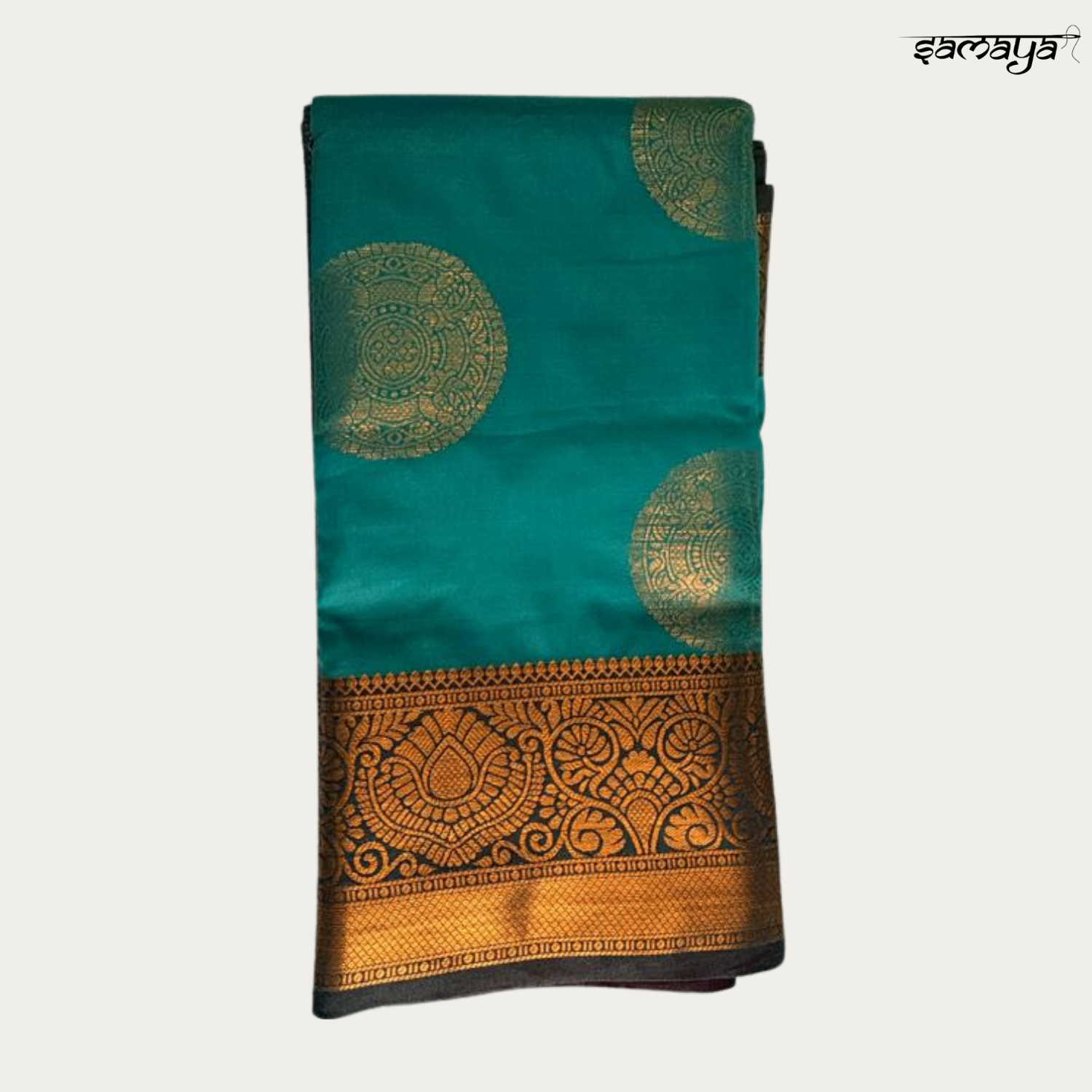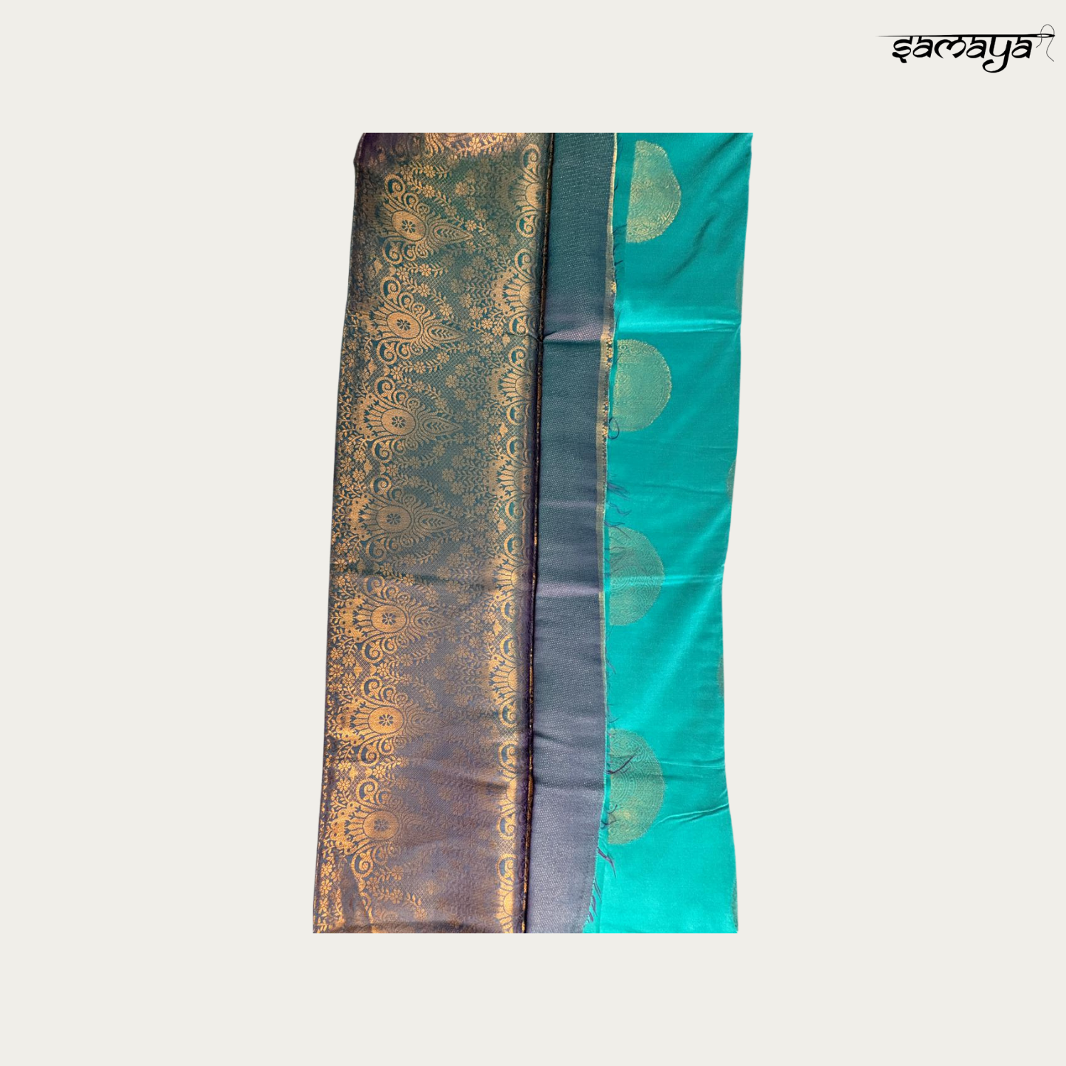 Deep Teal Kanjivaram Silk Blend Saree Copper Zari Wedding Festive