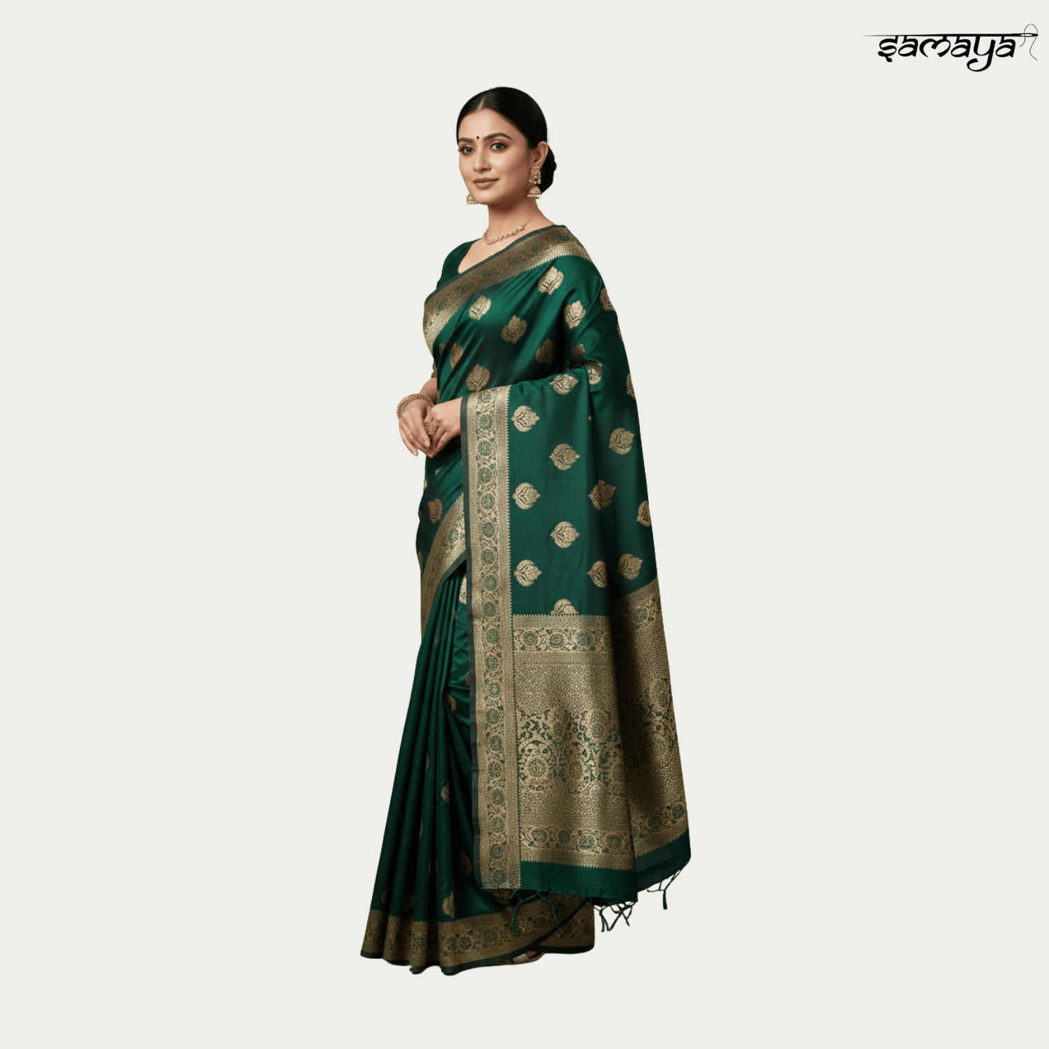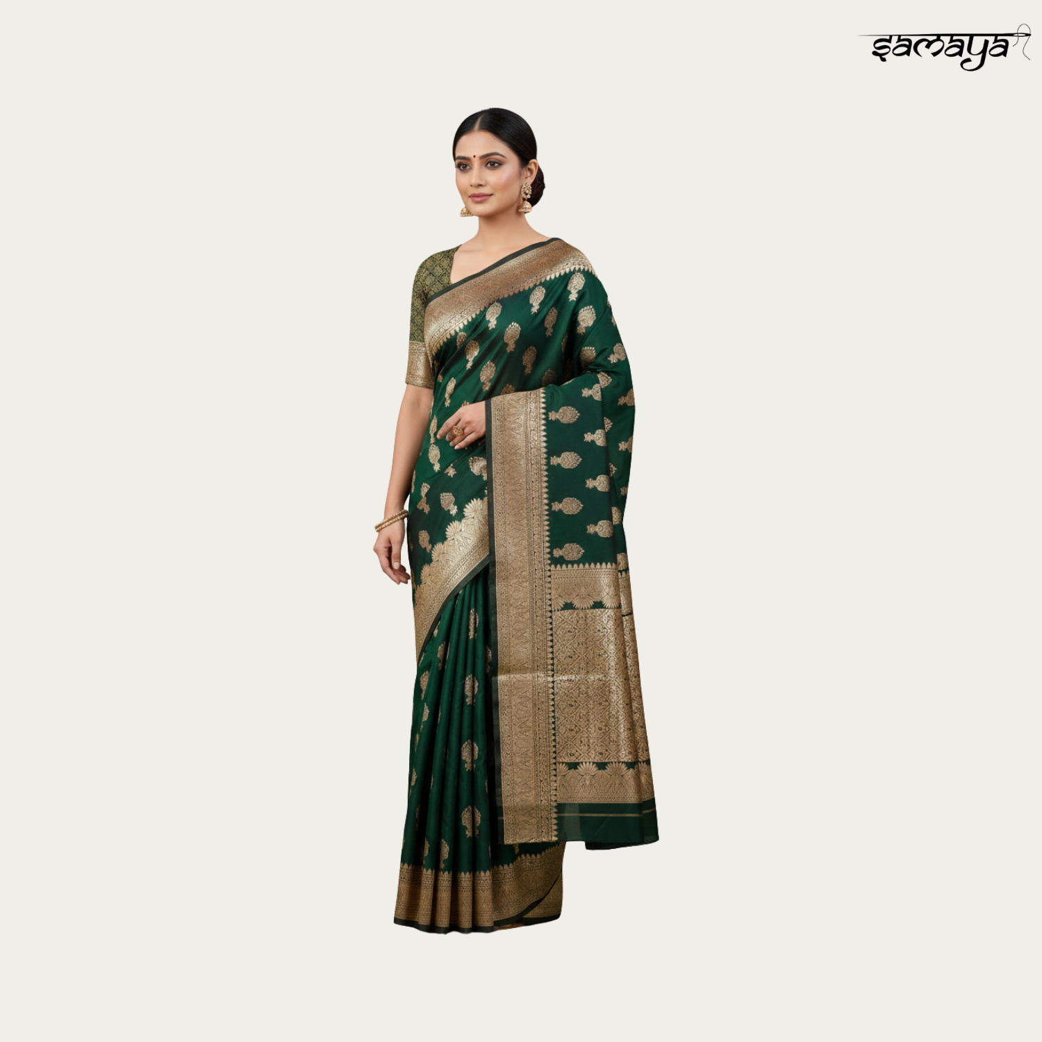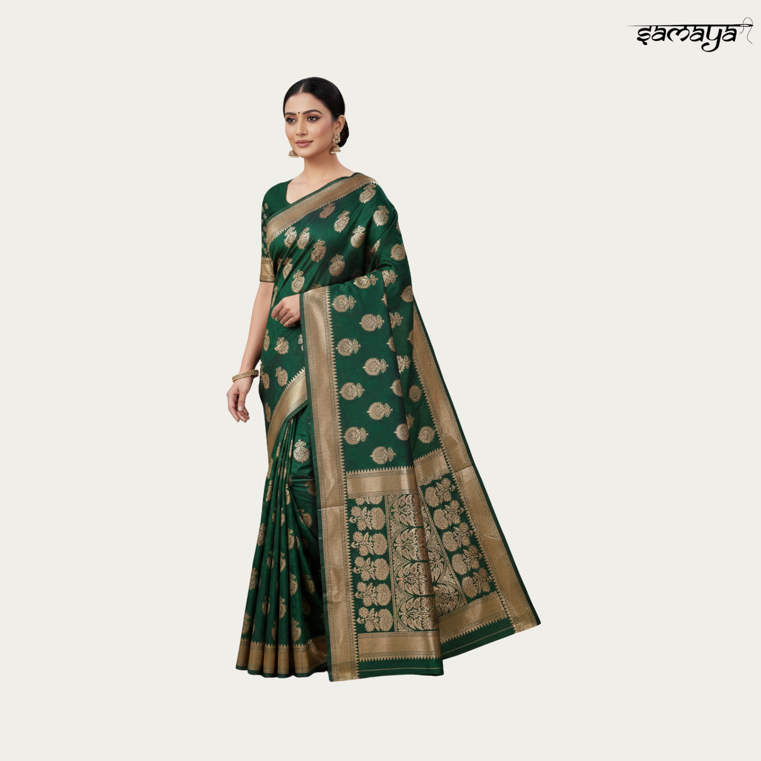 Bottle Green Banarasi Silk Saree Gold Zari Festive Wedding