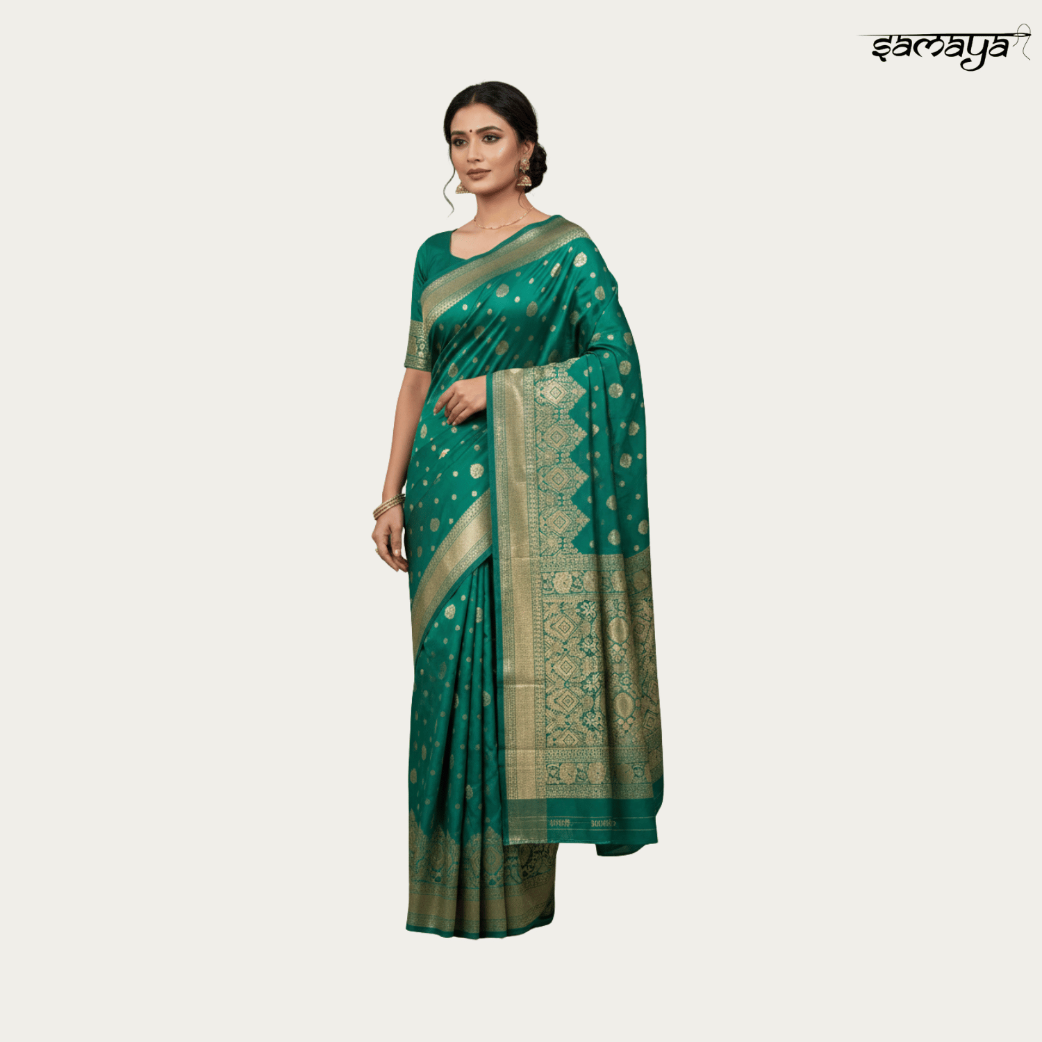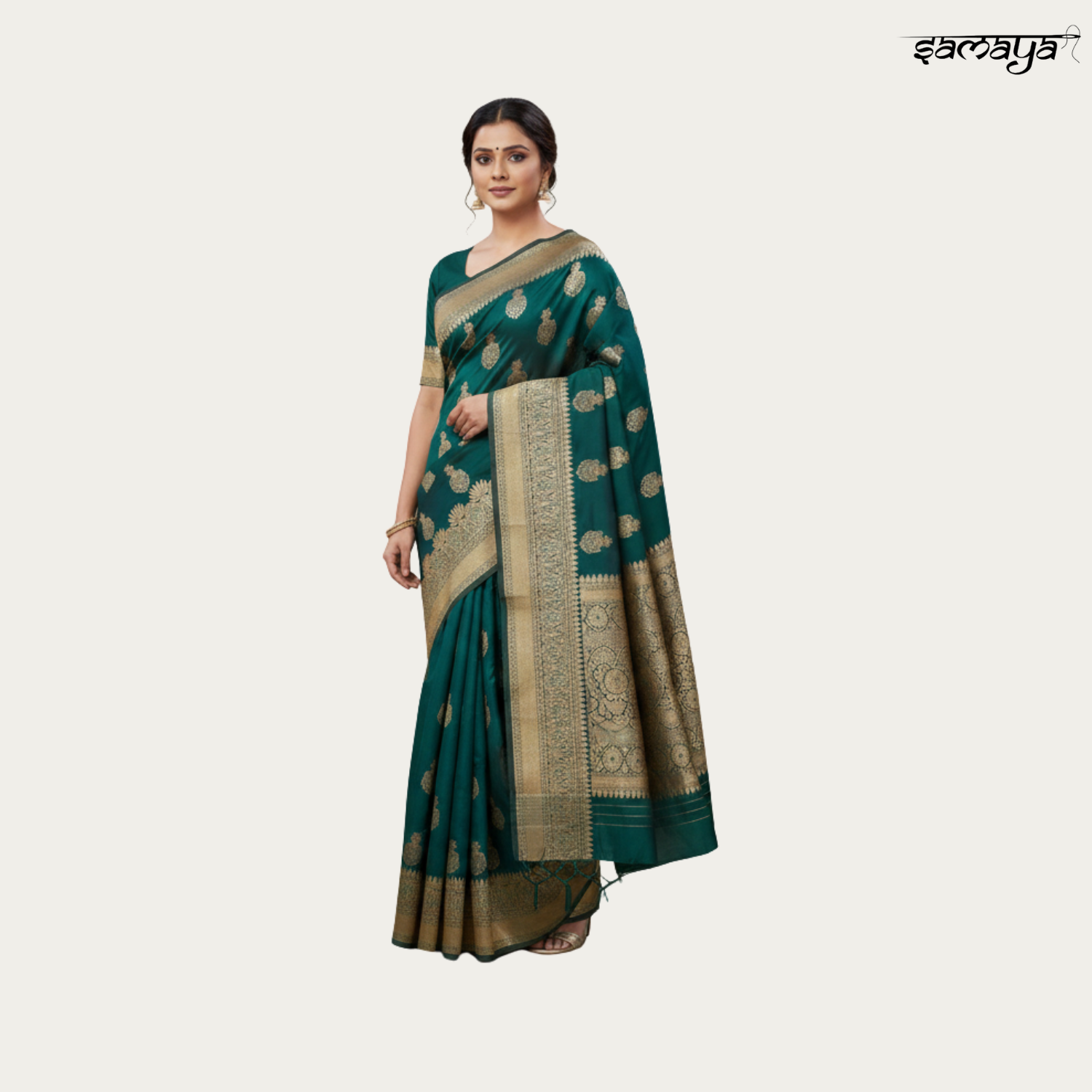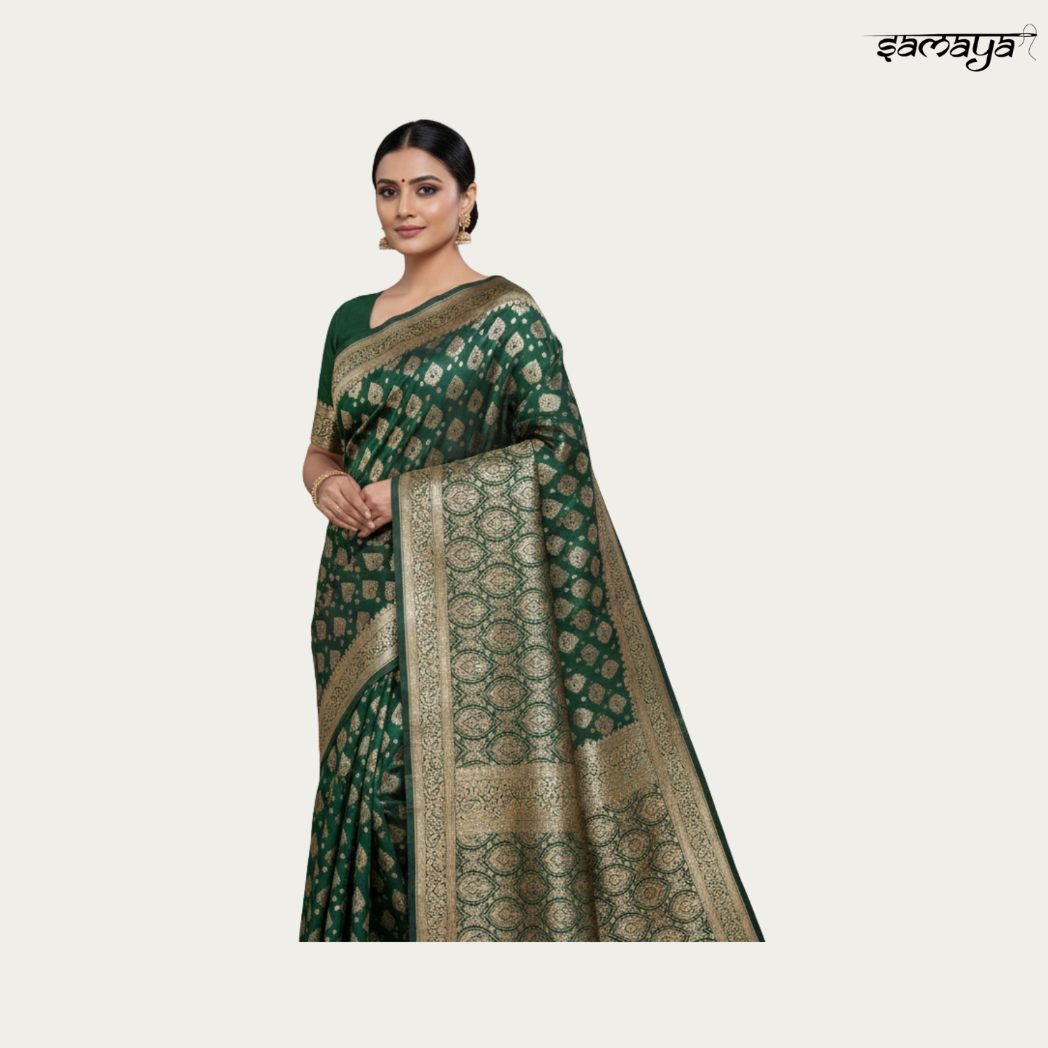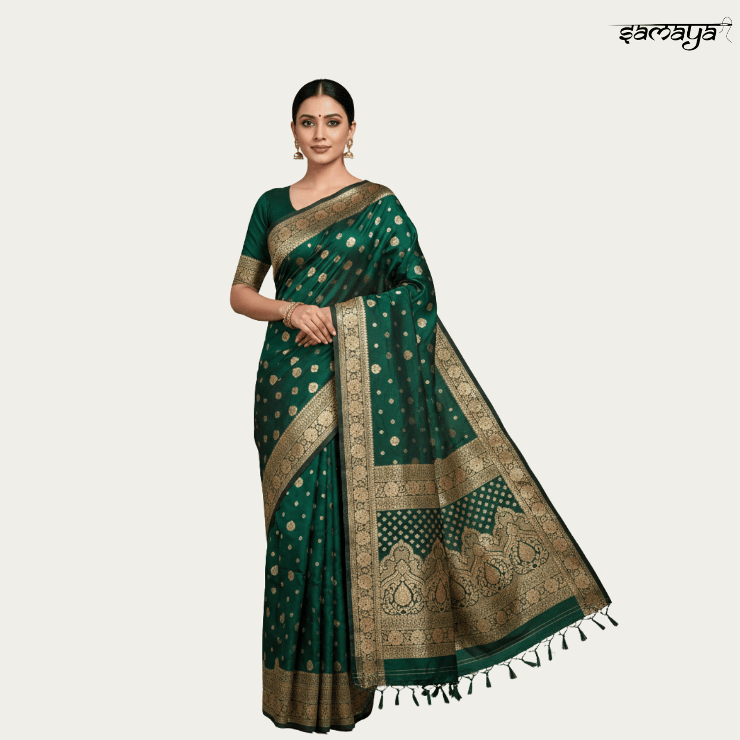 Bottle Green Banarasi Silk Saree Gold Zari Festive Wedding