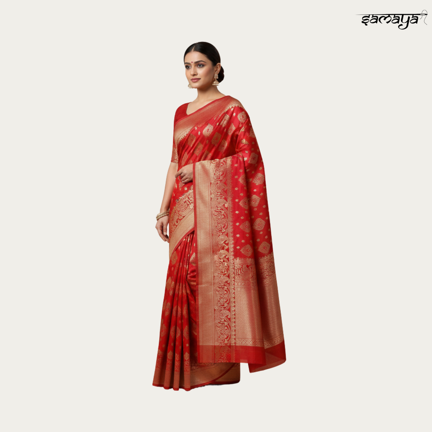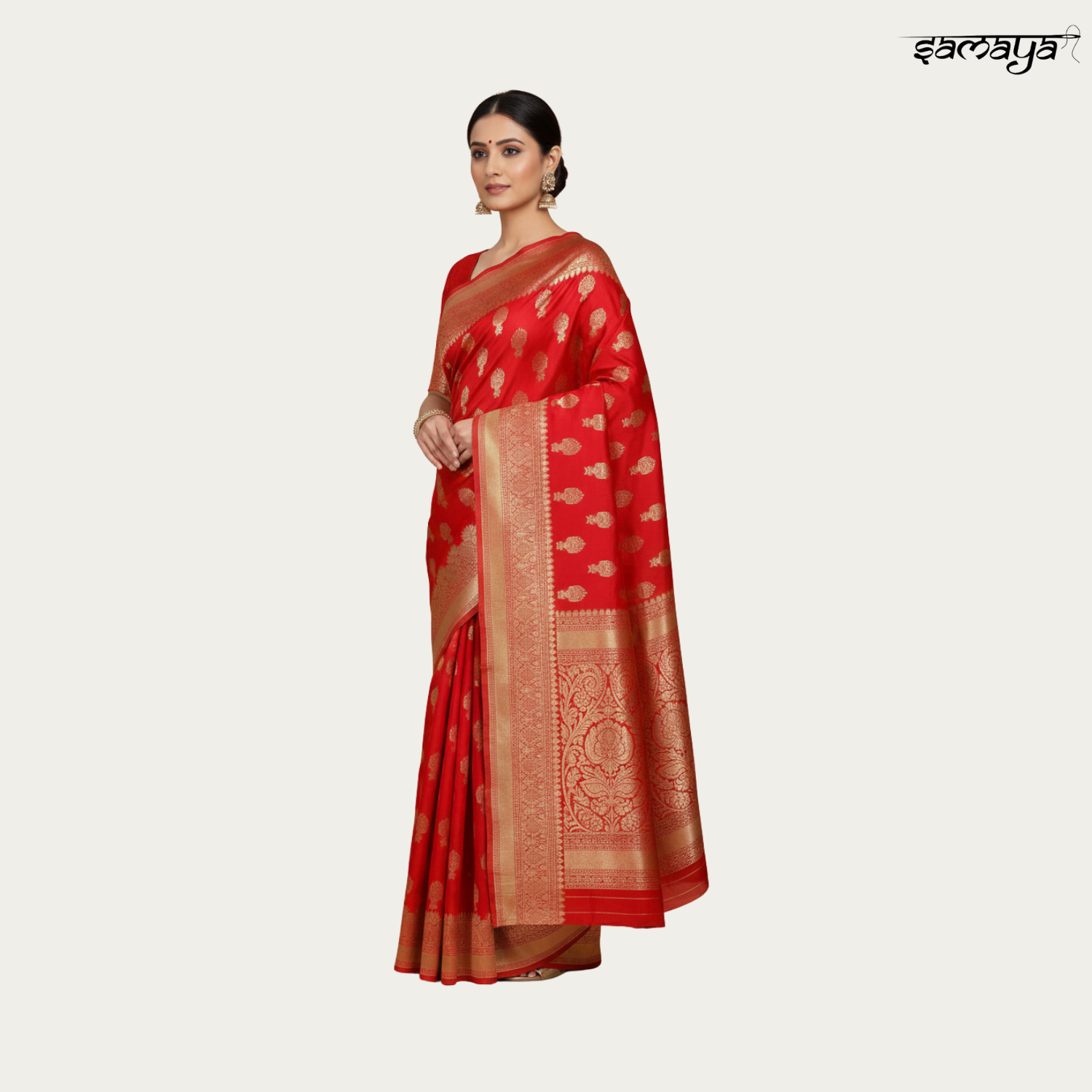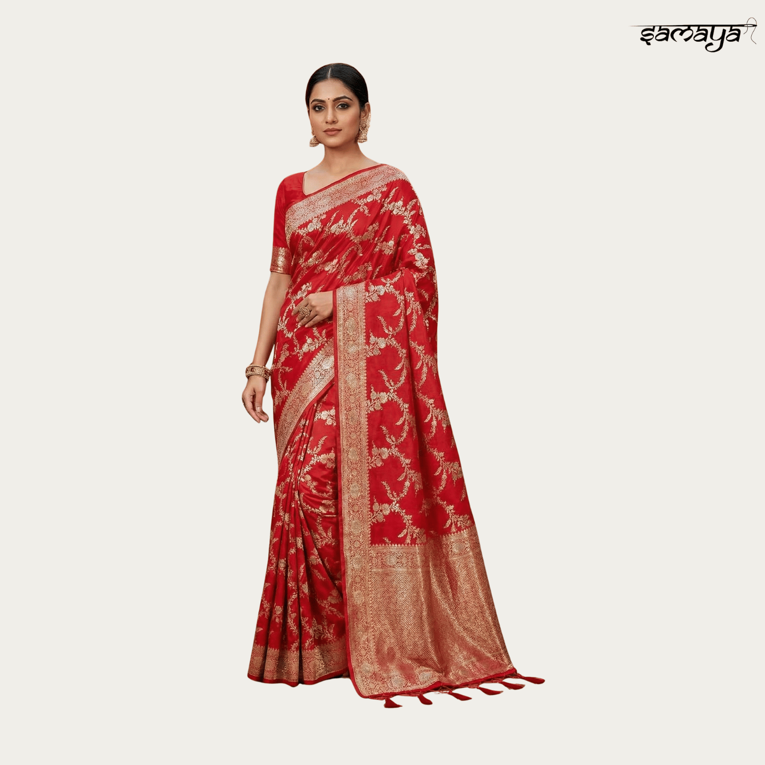 Festive Red Banarasi Silk Saree with Gold Zari for Wedding
