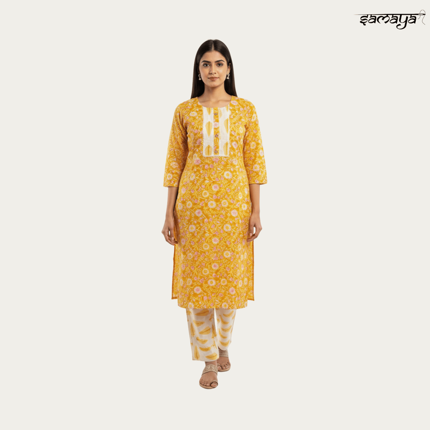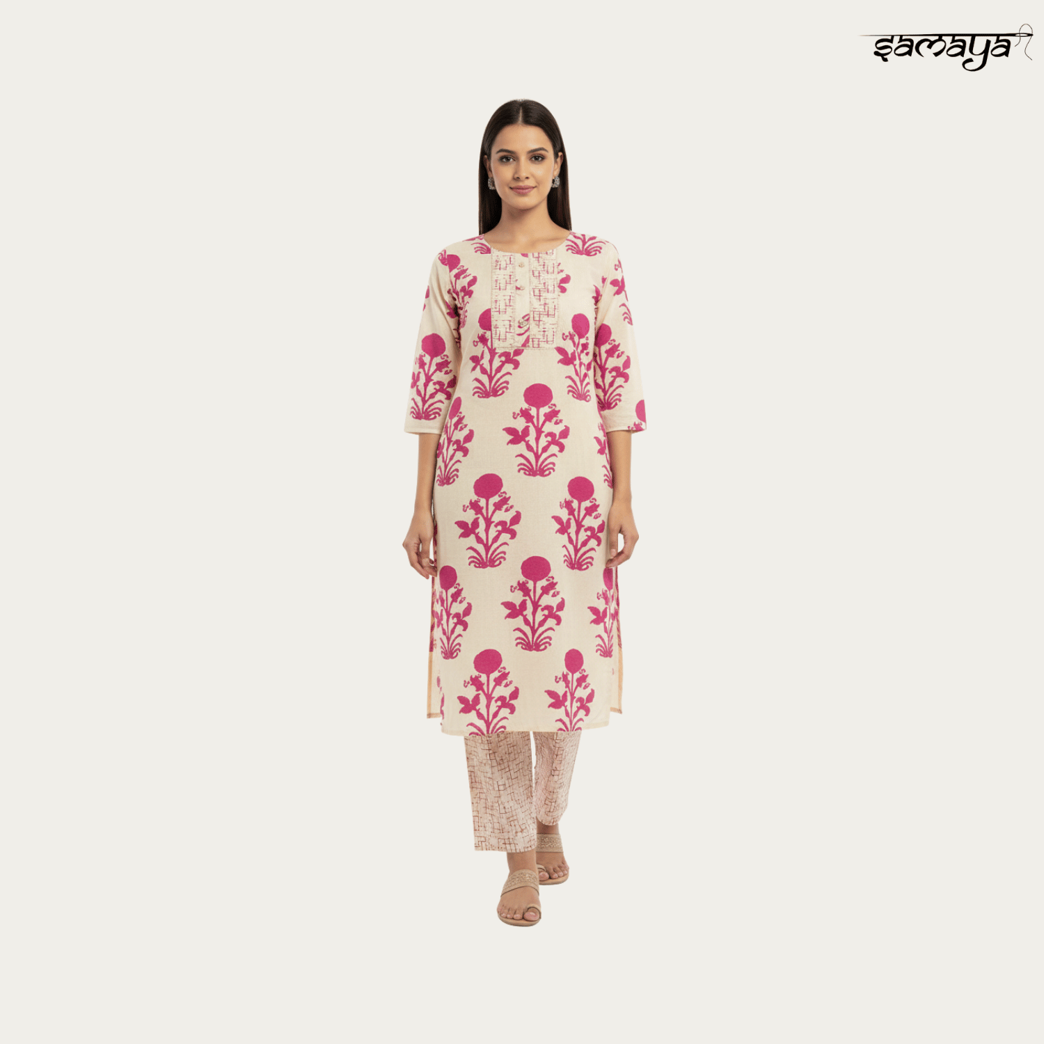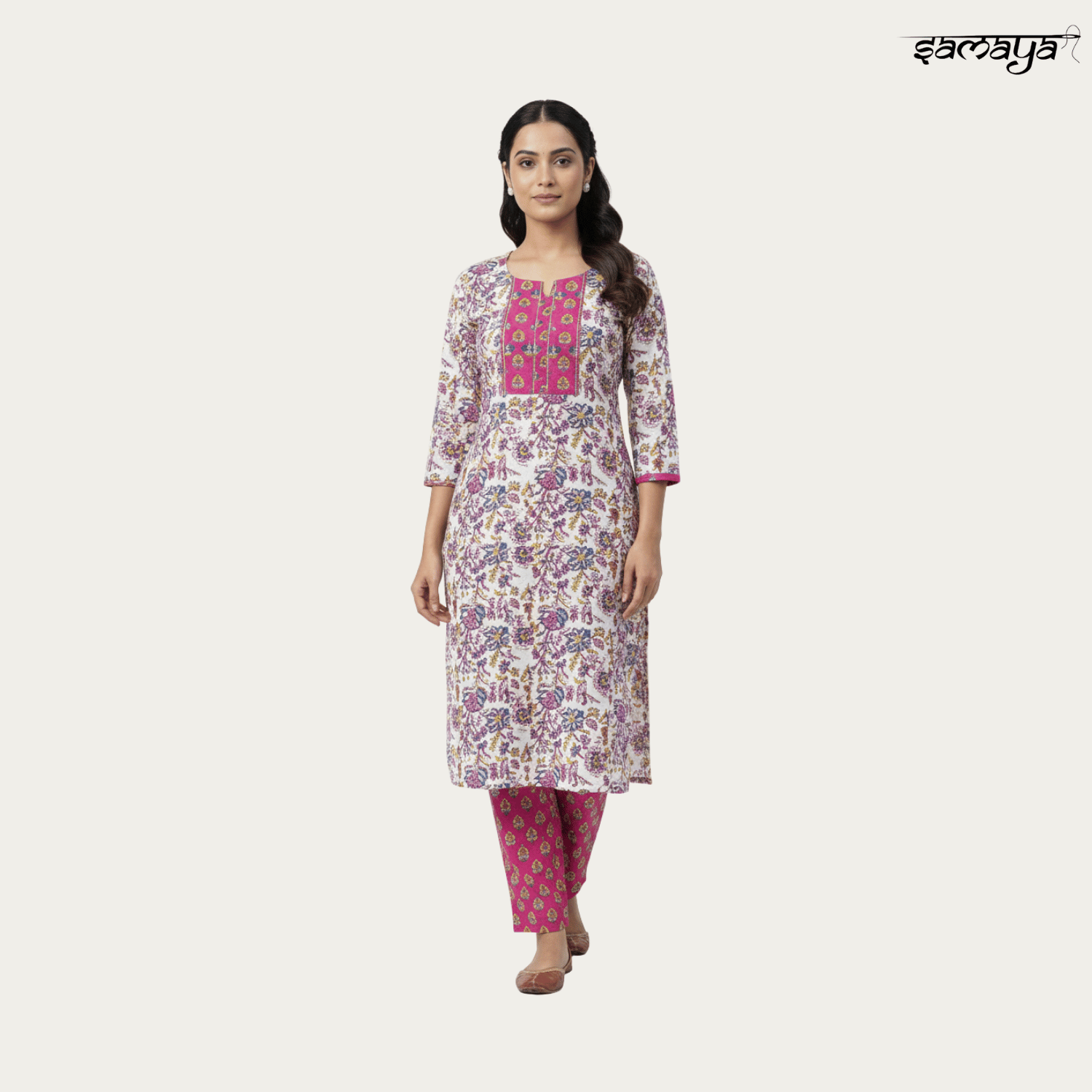 Ivory Floral Printed Cotton Kurti Set for Festive & Daily Wear