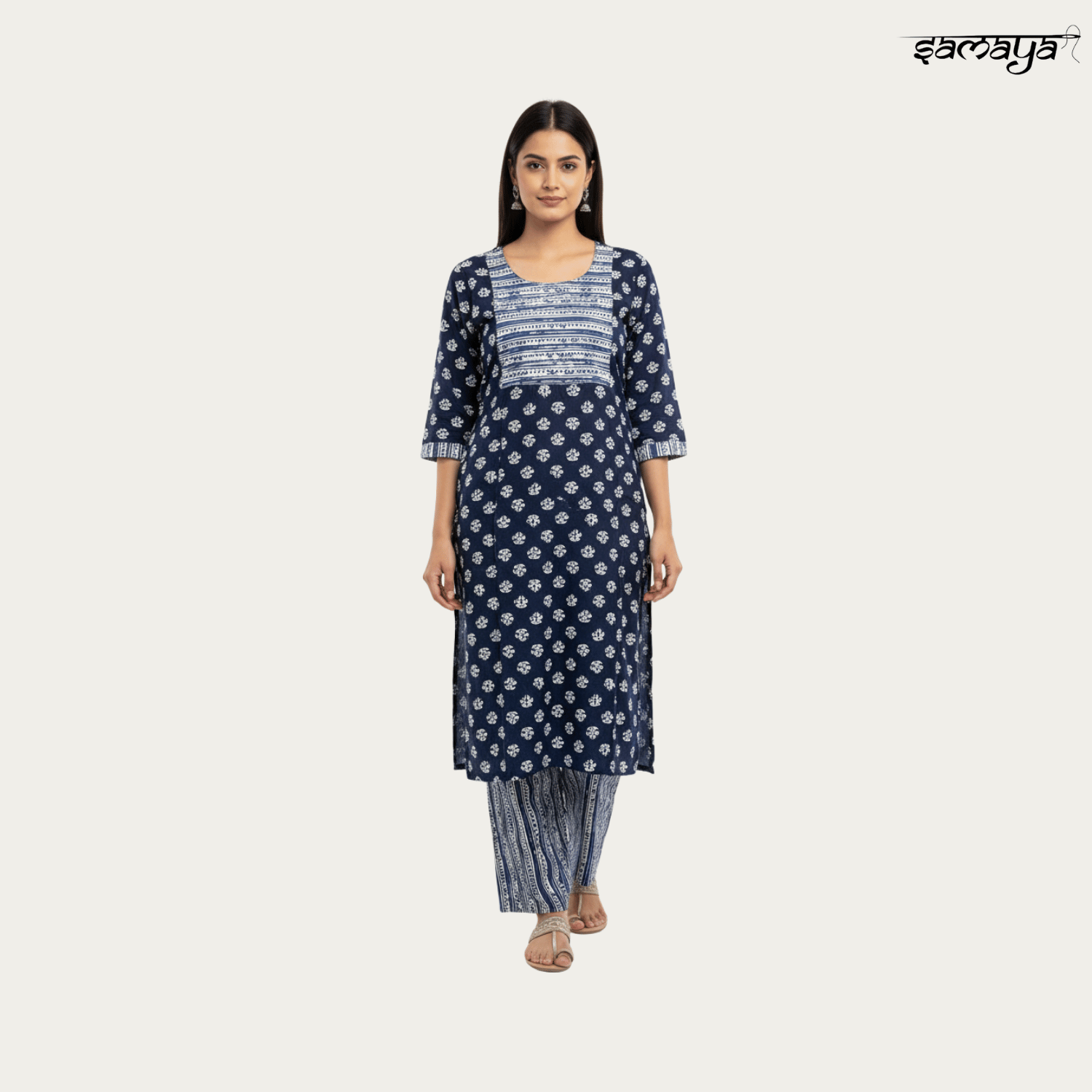 Navy Blue Printed Cotton Kurti Set Office Daily Wear