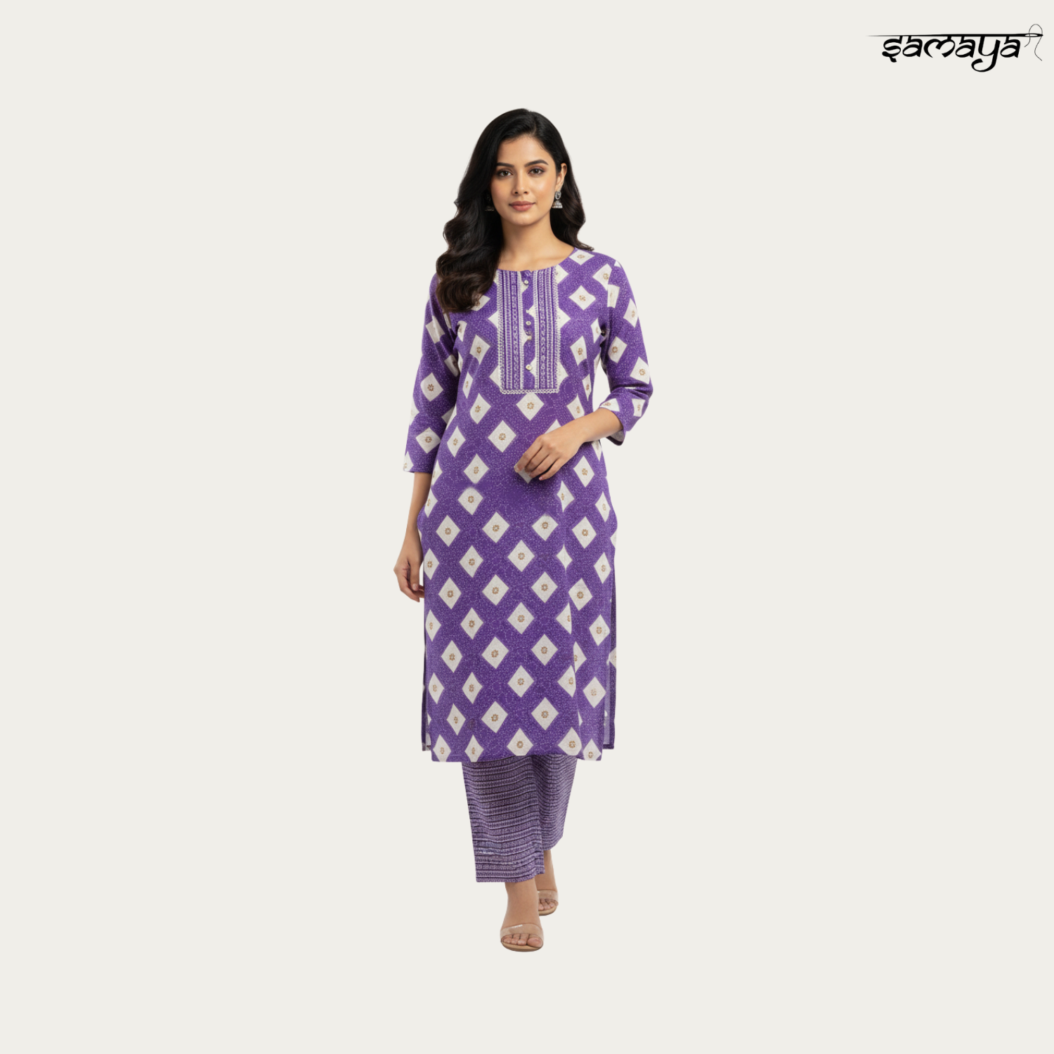 Purple Geometric Printed Cotton Kurti Set Office Daily Wear
