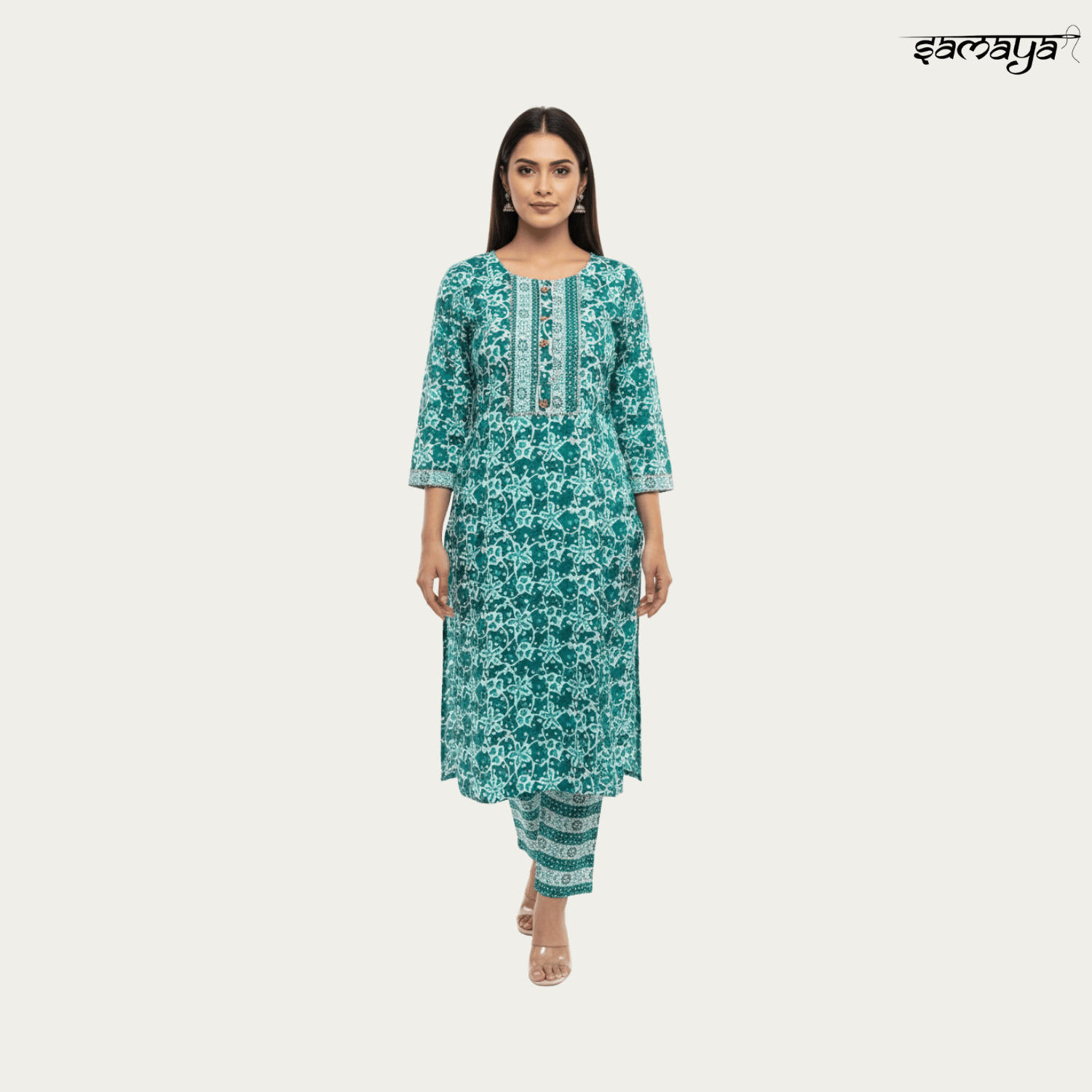 Teal Green Printed Cotton Kurti Set for Office & Daily Wear