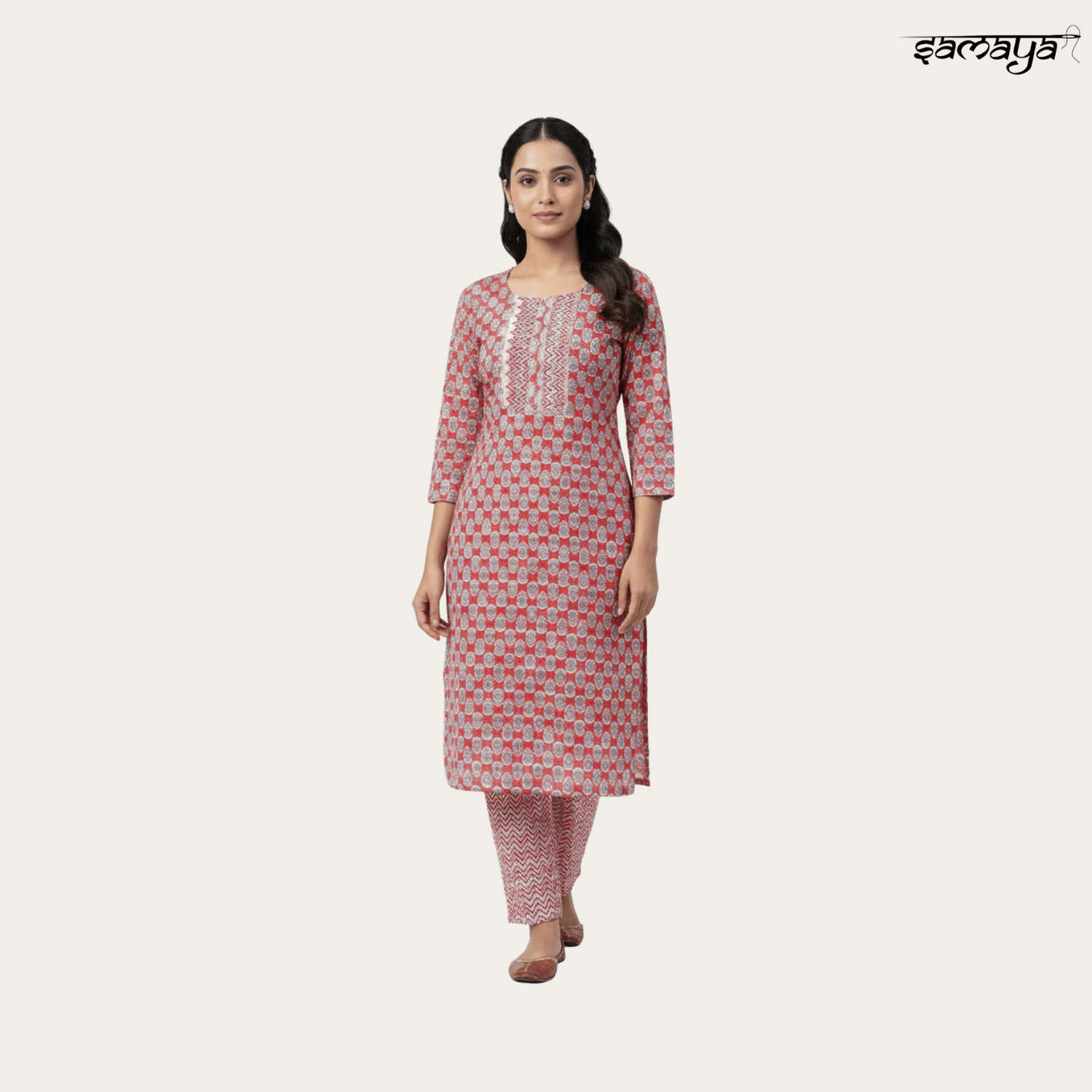 Rust Red Printed Cotton Kurti Set for Office & Daily Wear