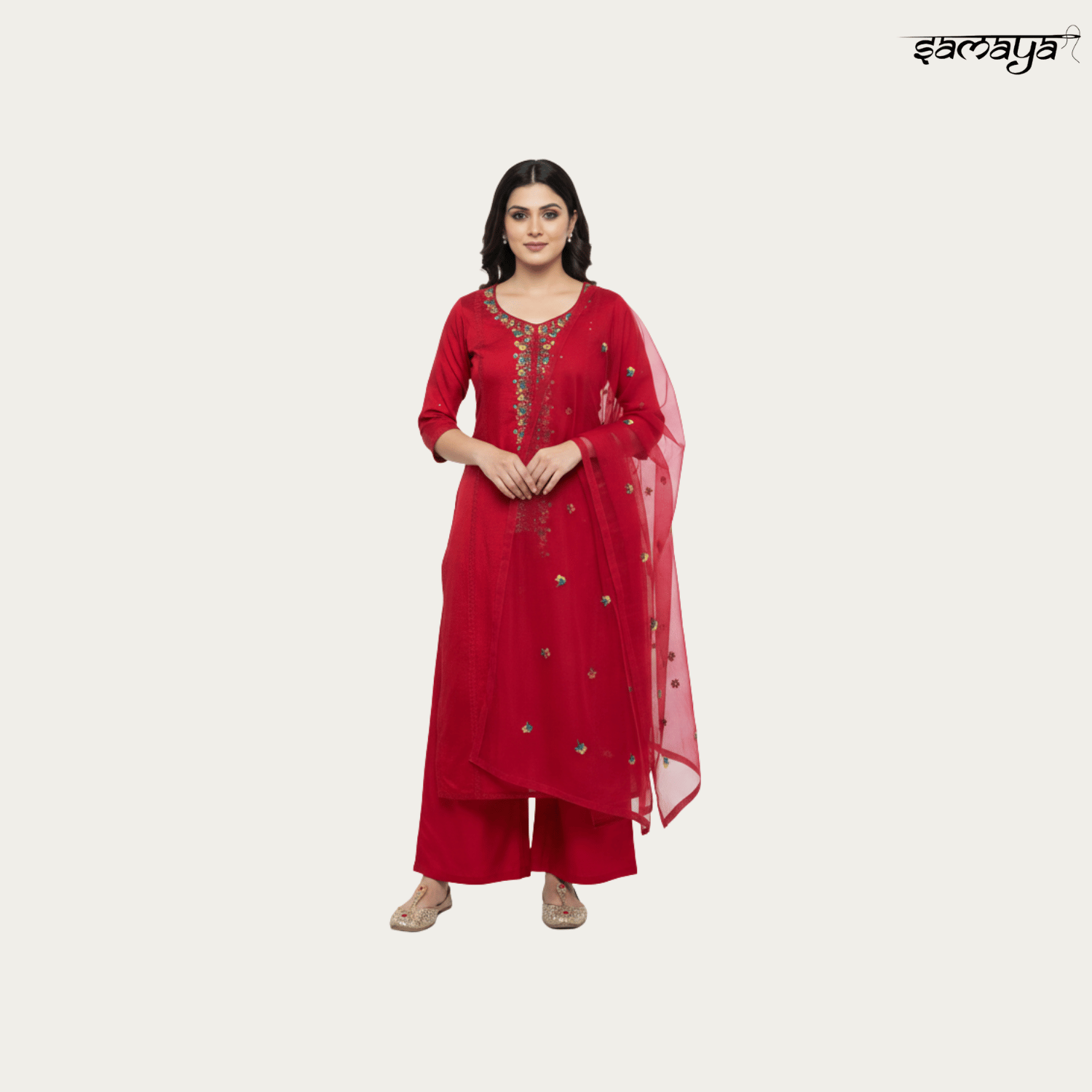 Red Cotton Embroidered Kurti Set for Festive and Party Wear