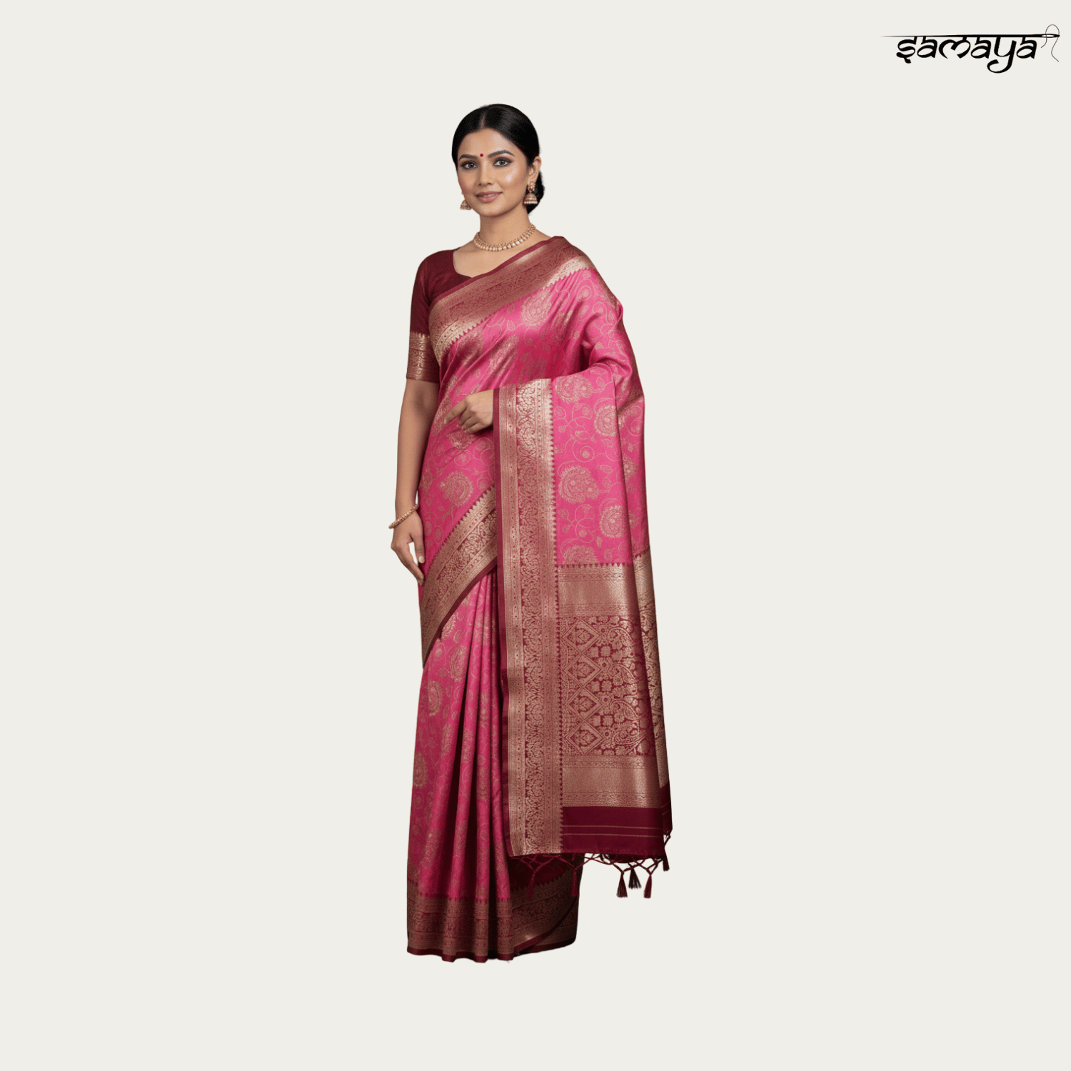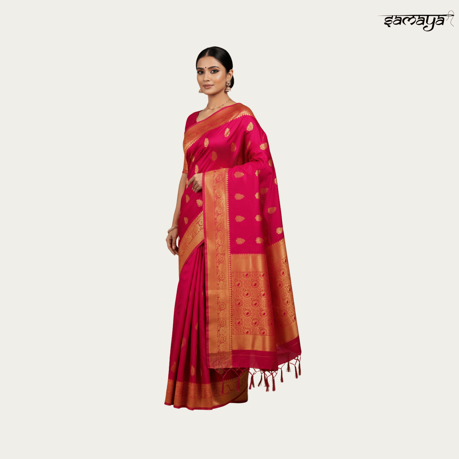 Rani Pink Banarasi Silk Saree Gold Zari Weaving Festive Wedding