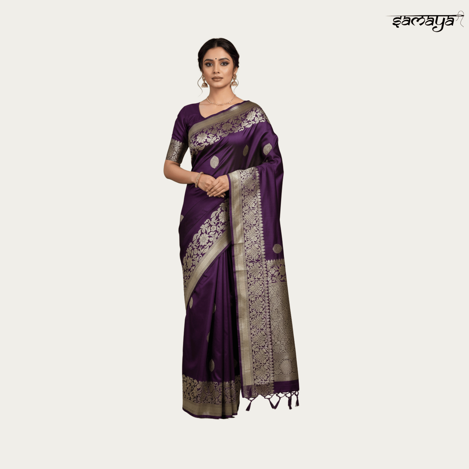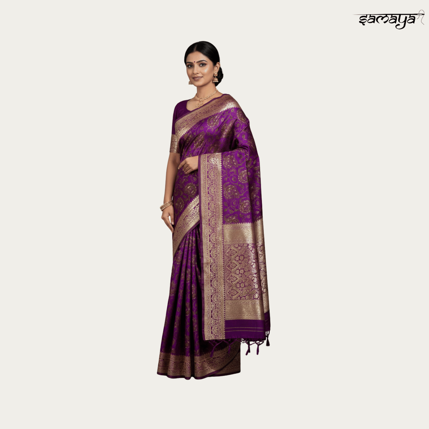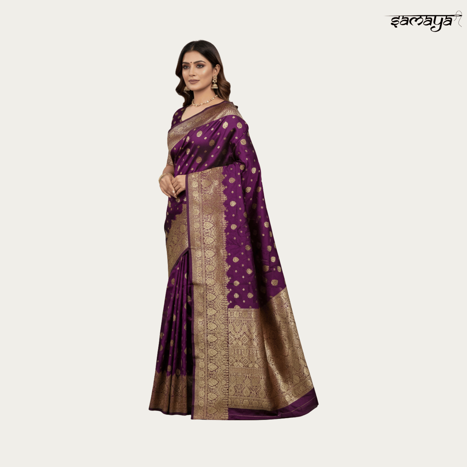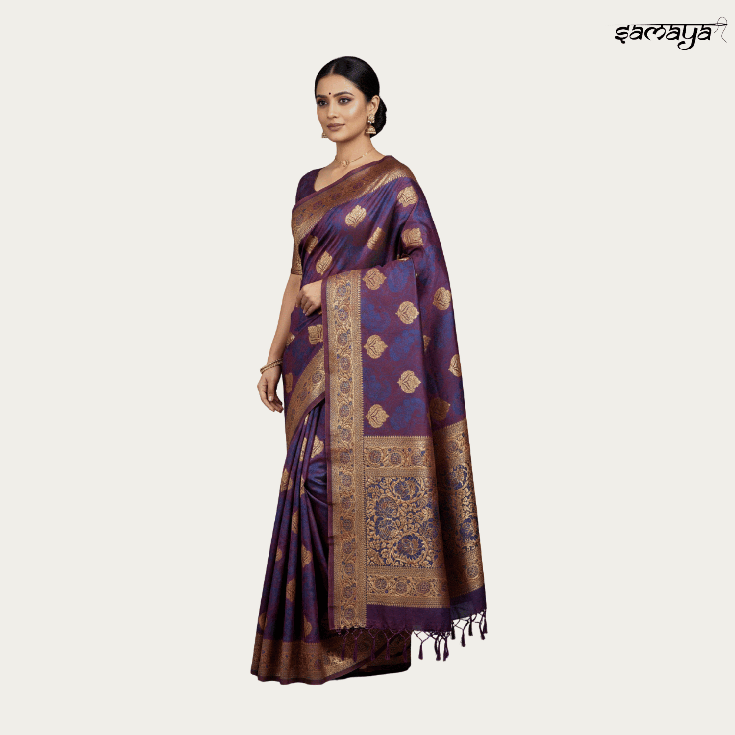Regal Purple Banarasi Silk Saree Gold Zari Weaving Wedding Festive