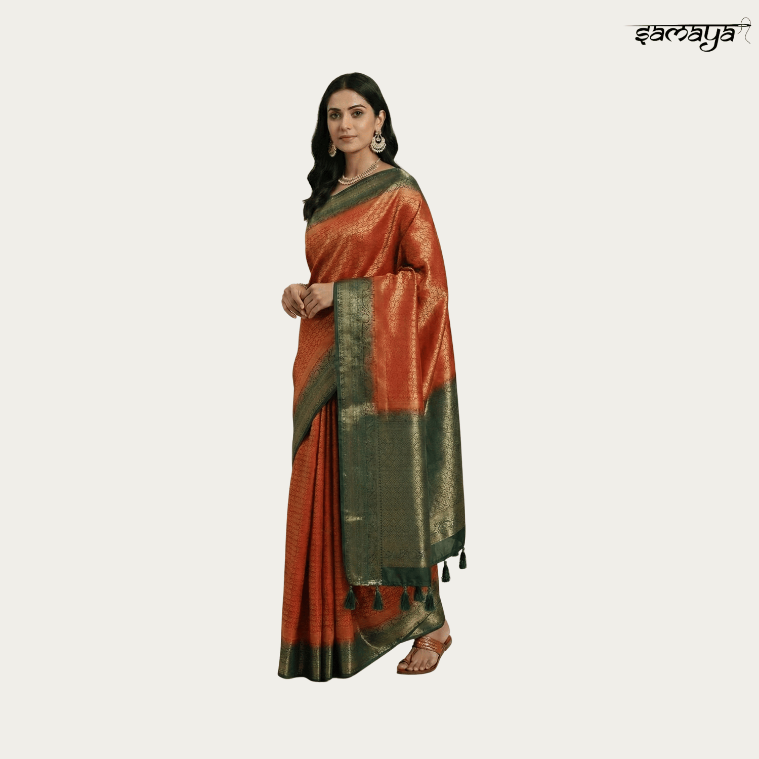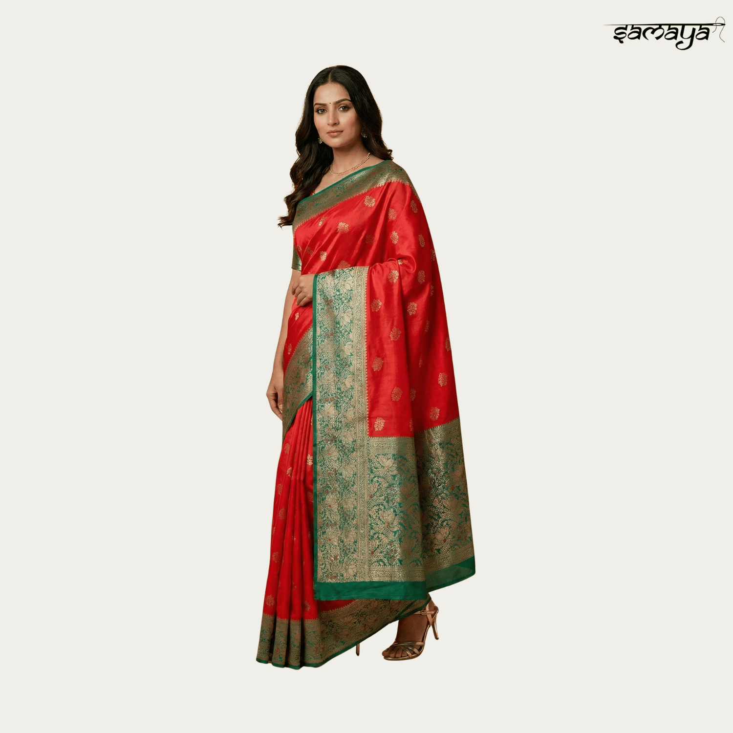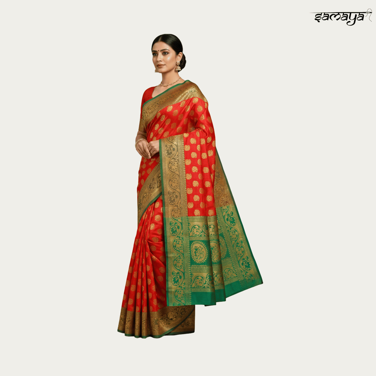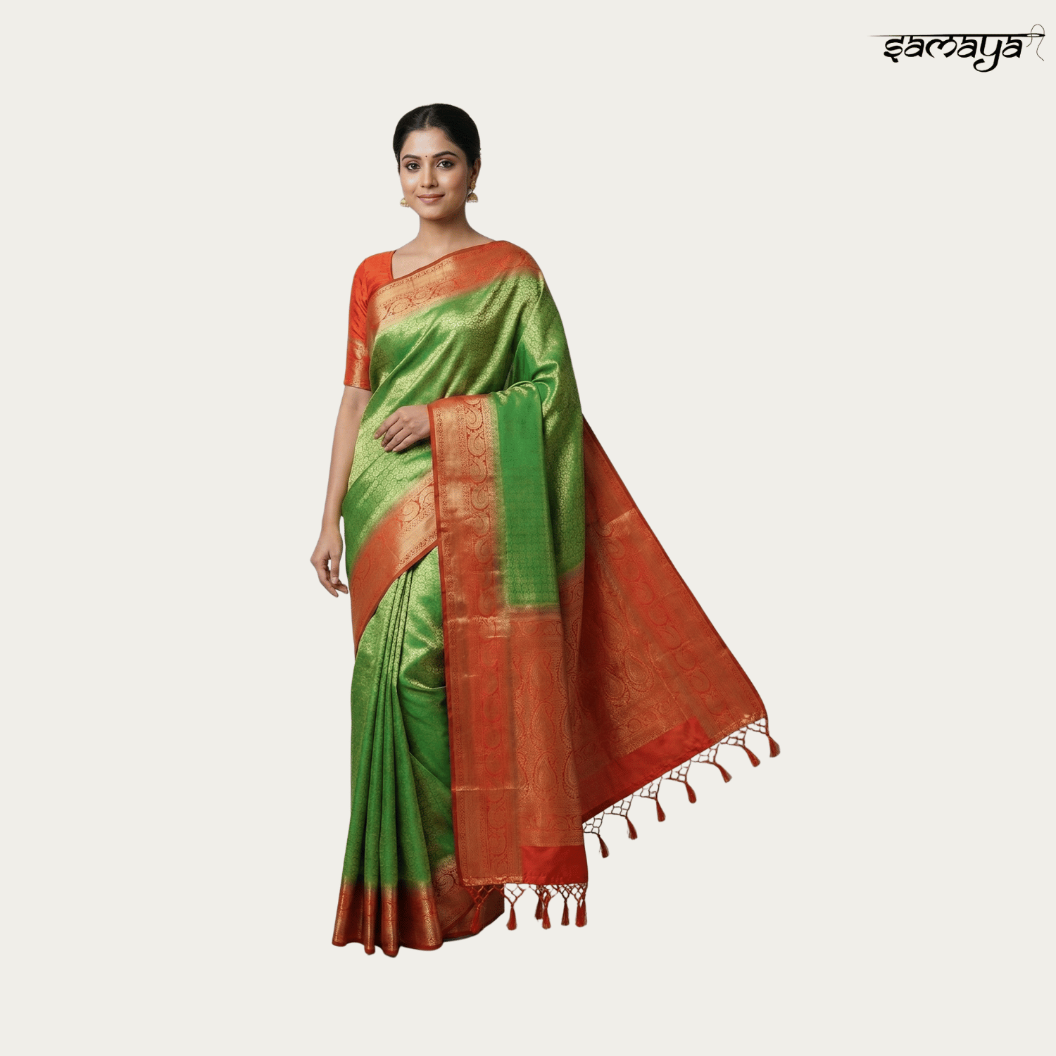 Buyers appreciate the vibrant contrast of peacock green with red and orange tones, along with the rich gold zari detailing that creates an expensive wedding saree look without heavy maintenance. Samaya Fashion adds confidence to every purchase with fast delivery across India, free shipping, easy returns, cash on delivery, and reliable 24x7 customer support, making this festive saree a trusted and stylish choice.