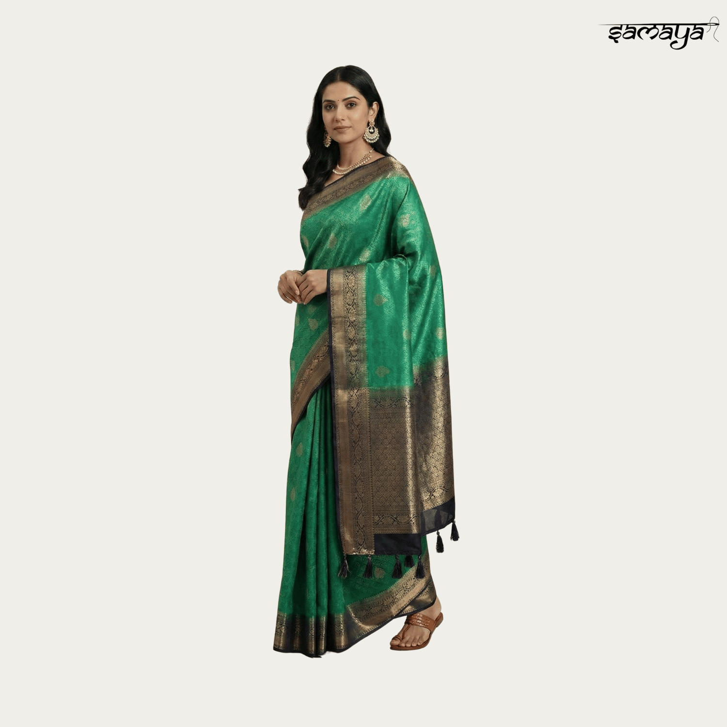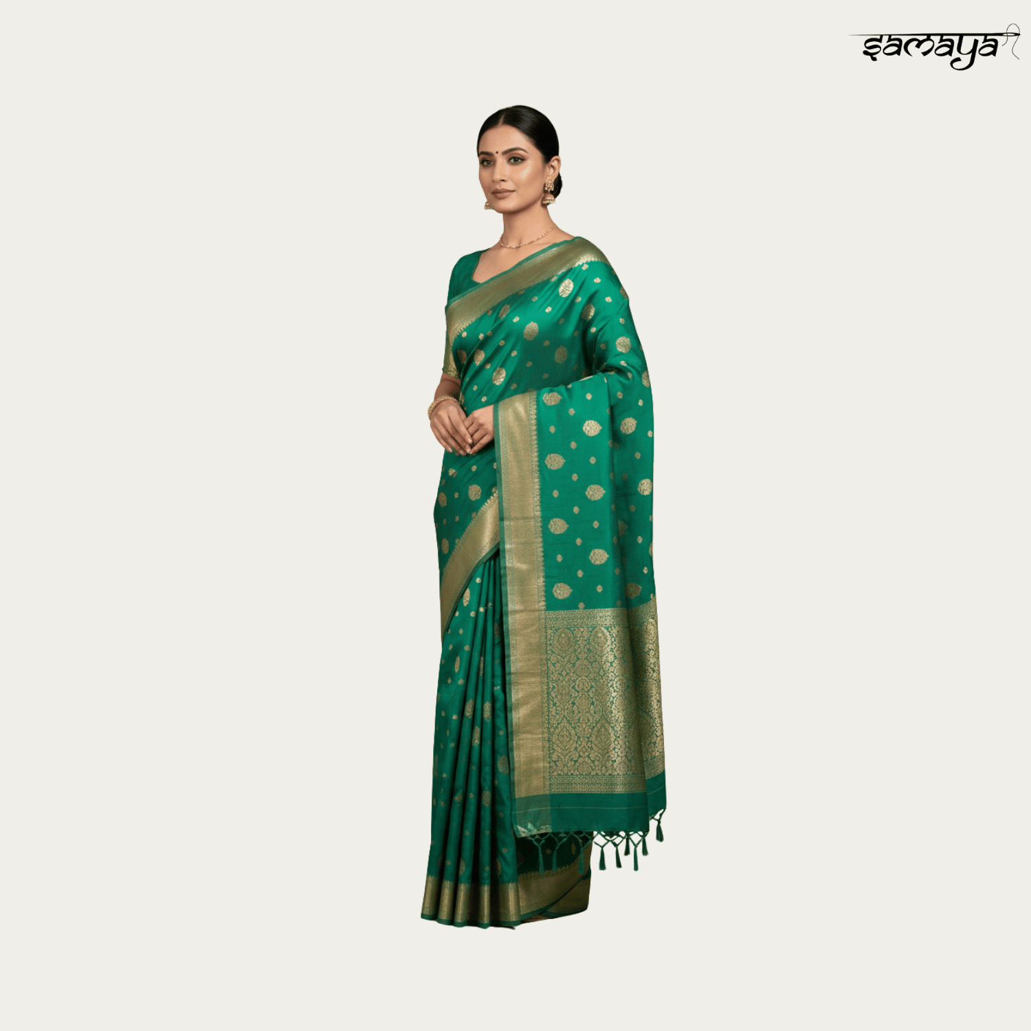 Emerald Green Banarasi Silk Saree with Zari Work for Wedding