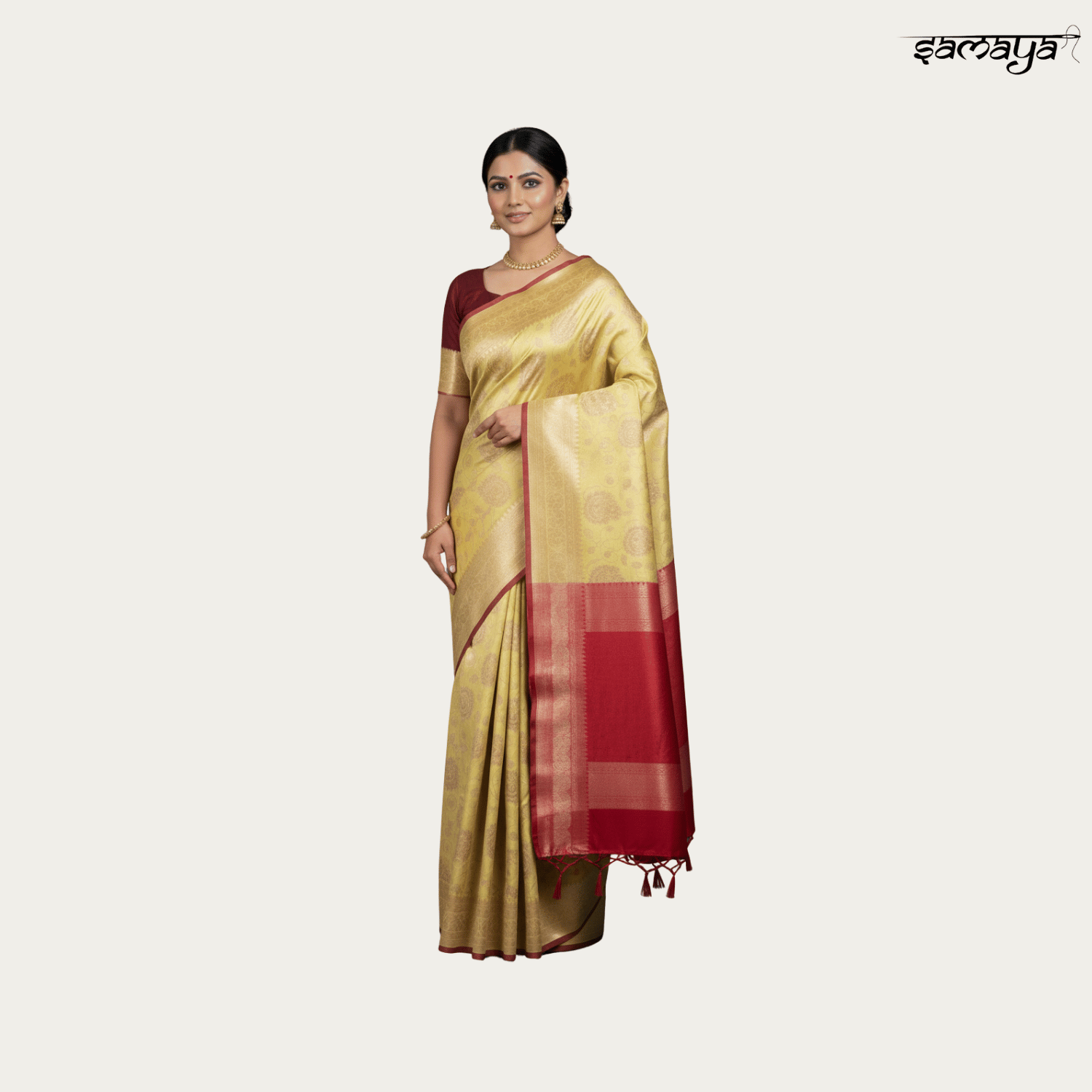 | Work Type | Gold Zari Woven Motifs |