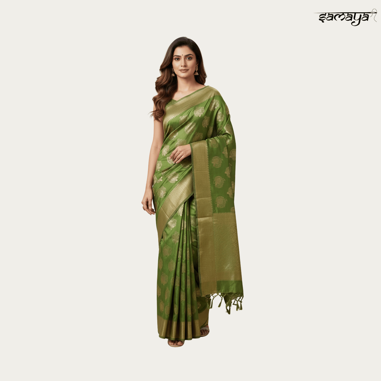 Olive Green Soft Banarasi Silk Saree with Zari for Festivals