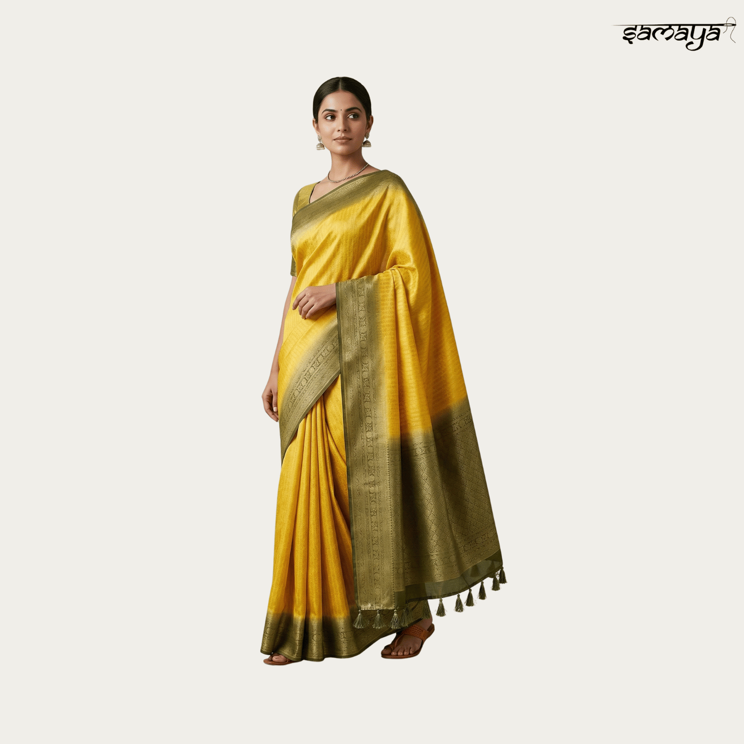 Mustard Yellow Soft Silk Saree with Olive Border for Haldi