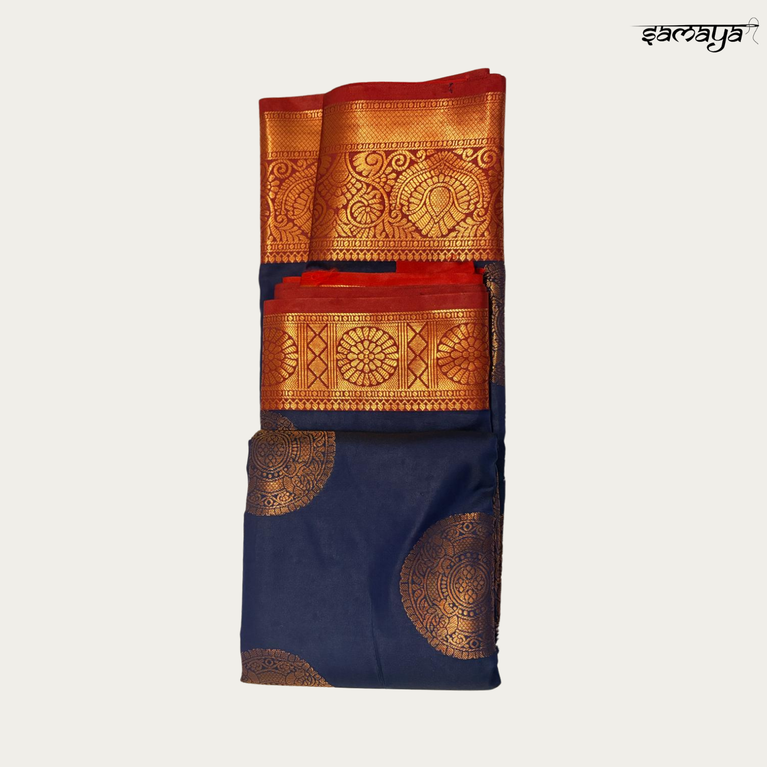 Buyers love the royal navy blue color combined with the richness of gold zari and the striking red contrast border, giving the saree an expensive and festive appearance. Samaya Fashion adds complete peace of mind with fast delivery across India, free shipping, easy returns, cash on delivery, and reliable 24x7 customer support, making this saree a trusted and stylish choice for grand occasions.