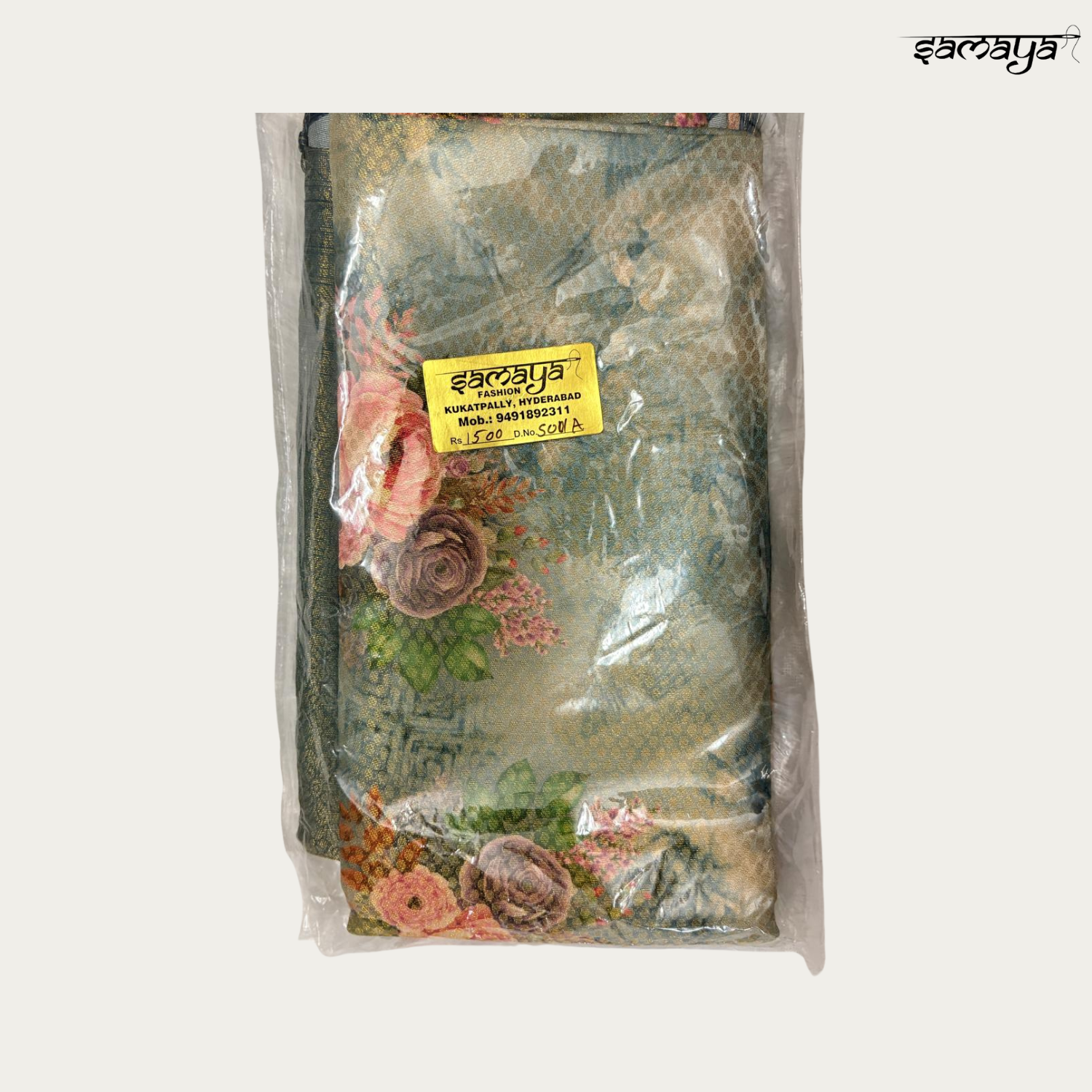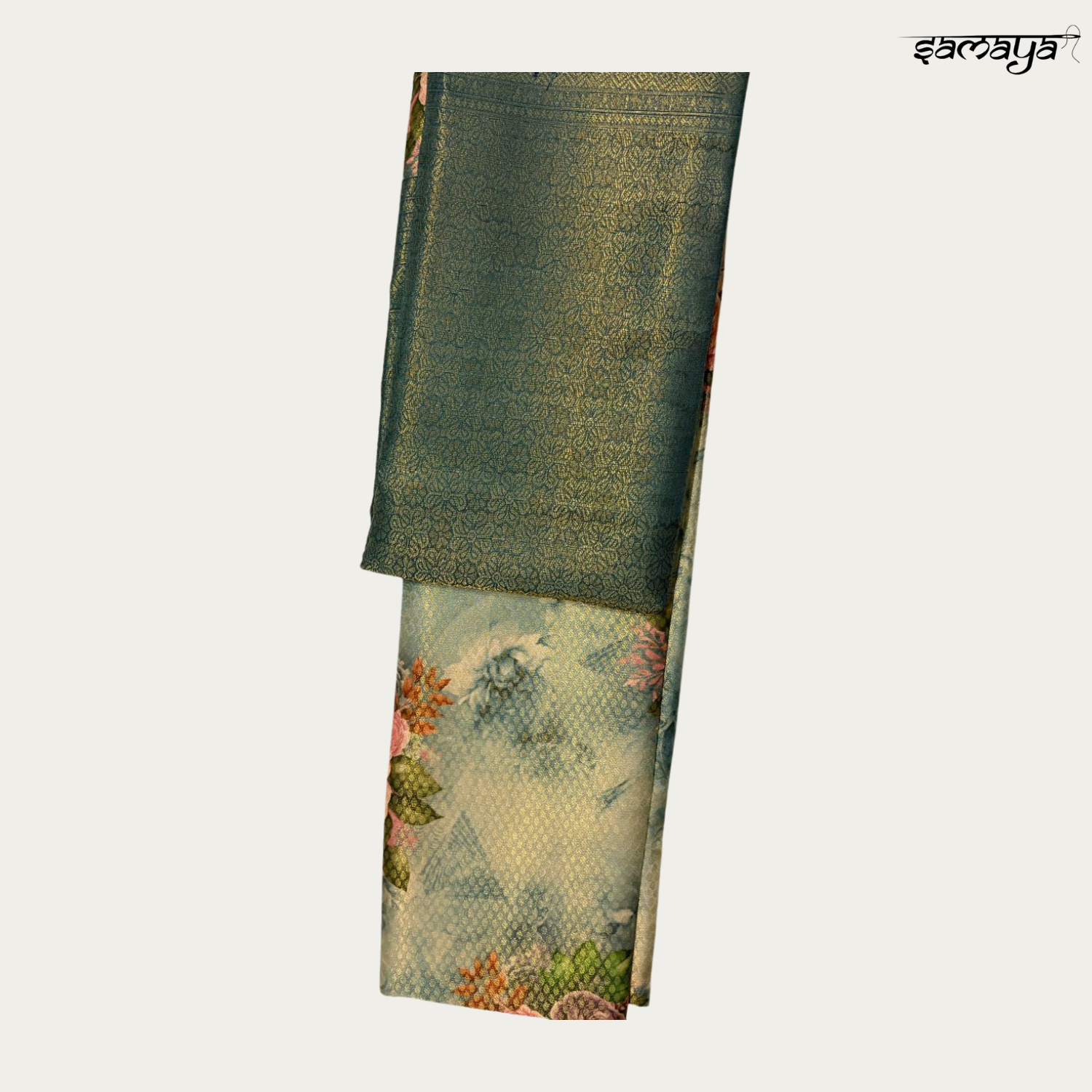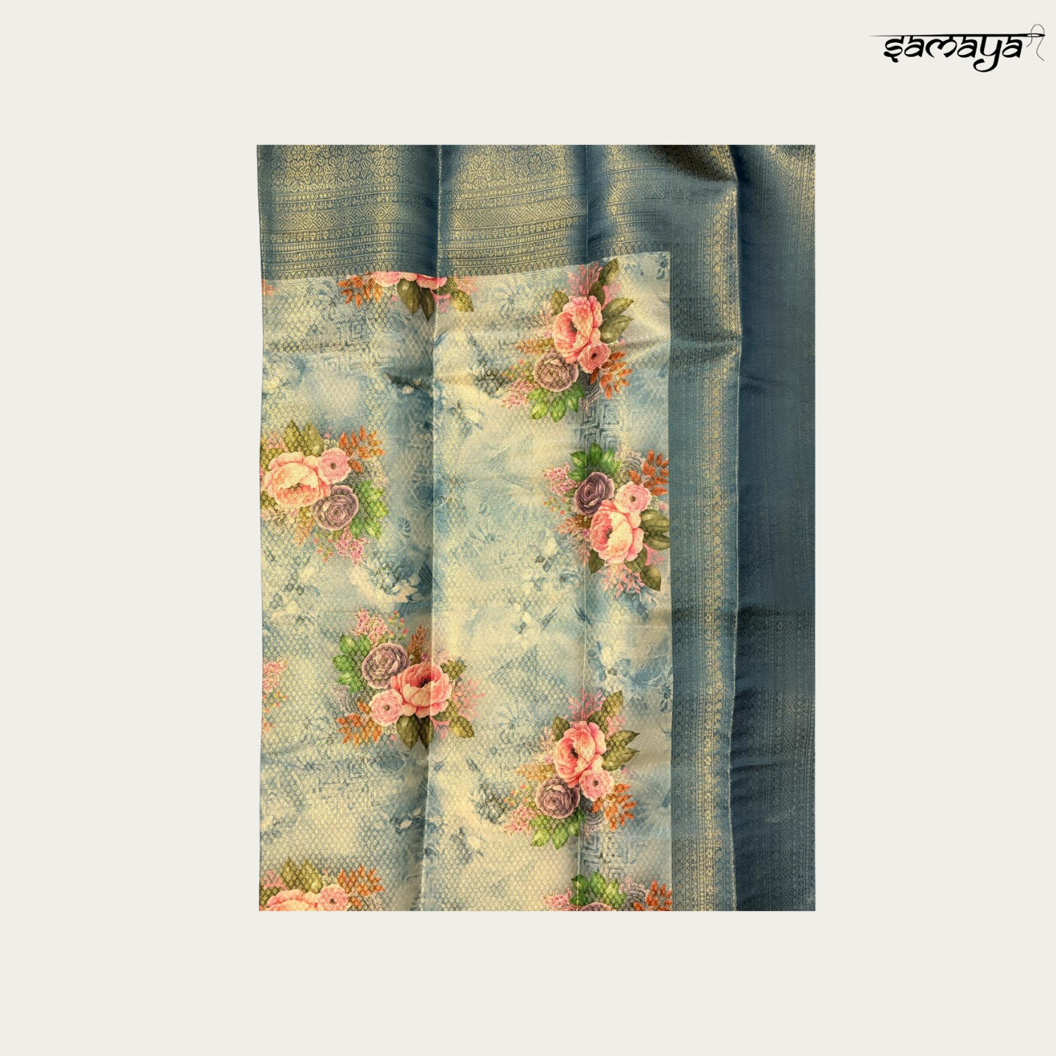 | Work Type | Gold Zari Woven Motifs and Digital Floral Print |