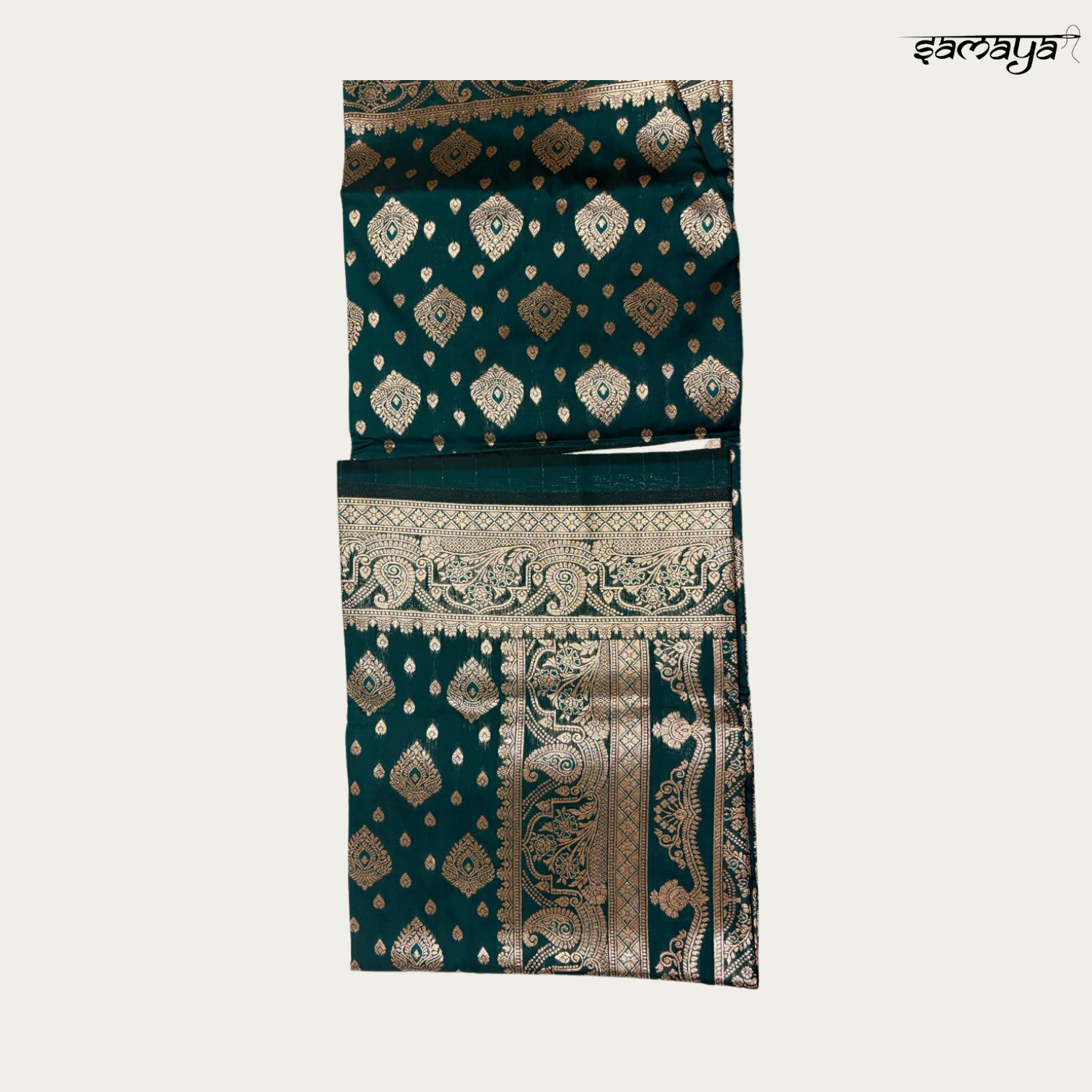 Bottle Green Banarasi Silk Saree with Gold Zari for Wedding