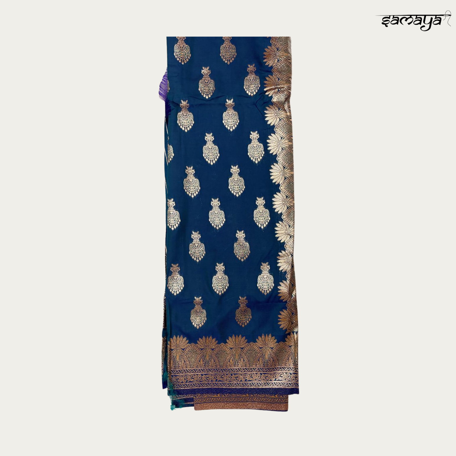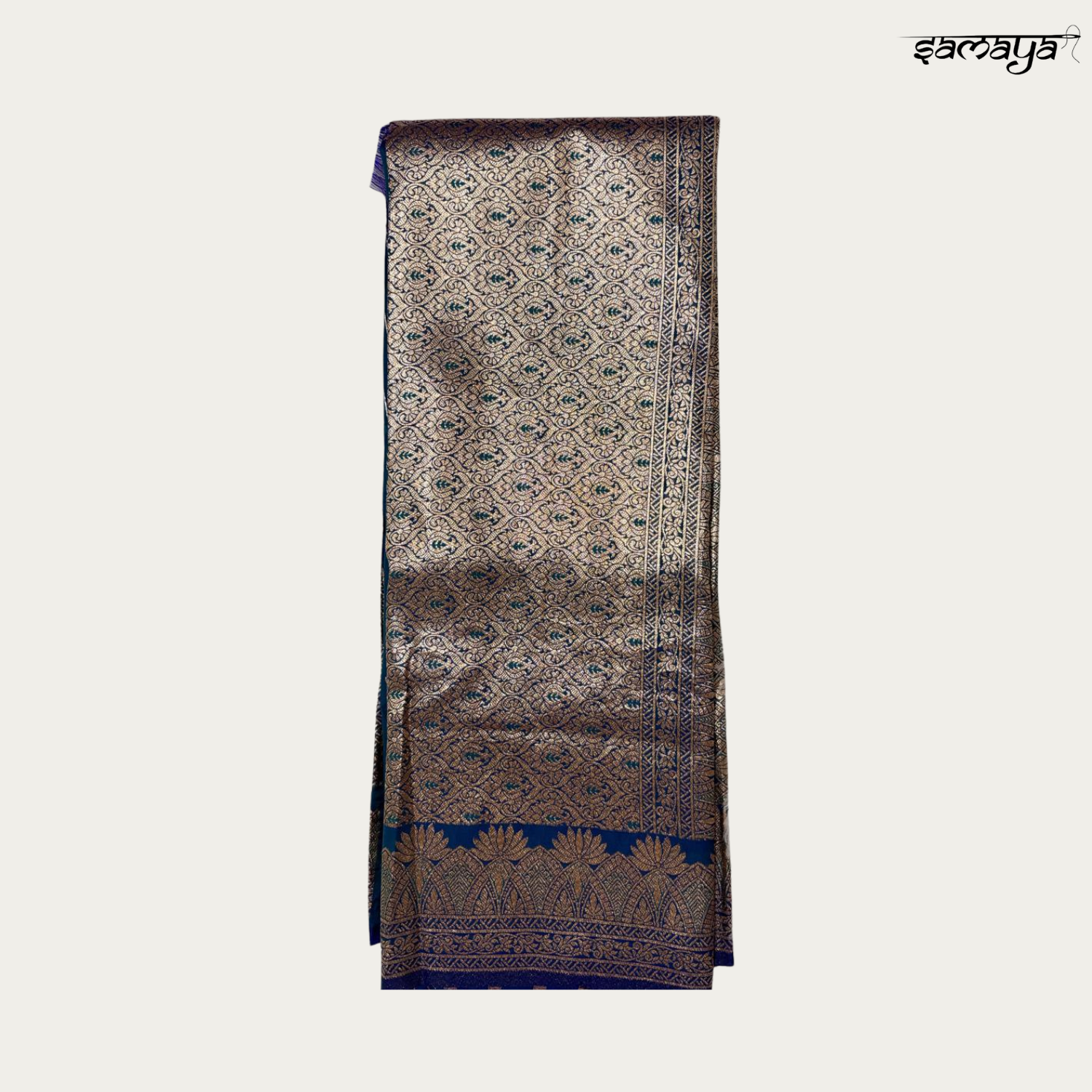 Navy Blue Banarasi Silk Saree Gold Zari Work Festive Wedding
