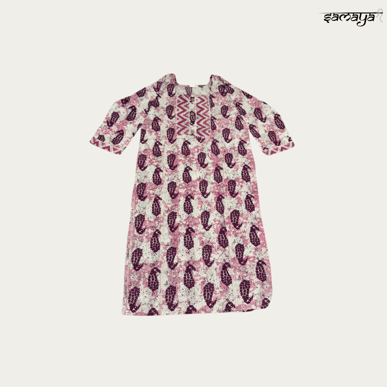 Rose Pink Printed Cotton Kurti Set with Dupatta Festive Wear