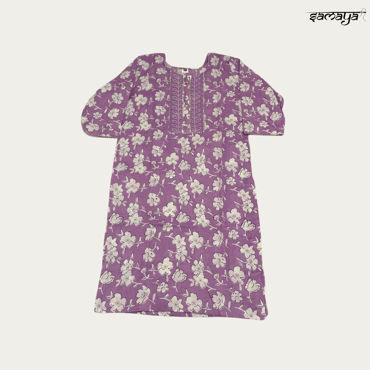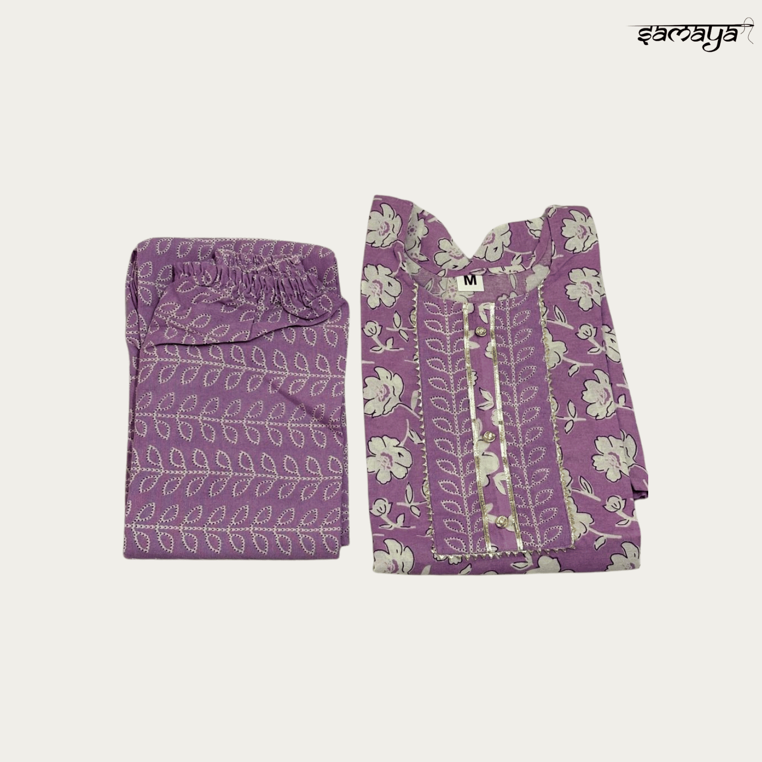 Lavender Floral Printed Cotton Kurti Set Office Daily Wear
