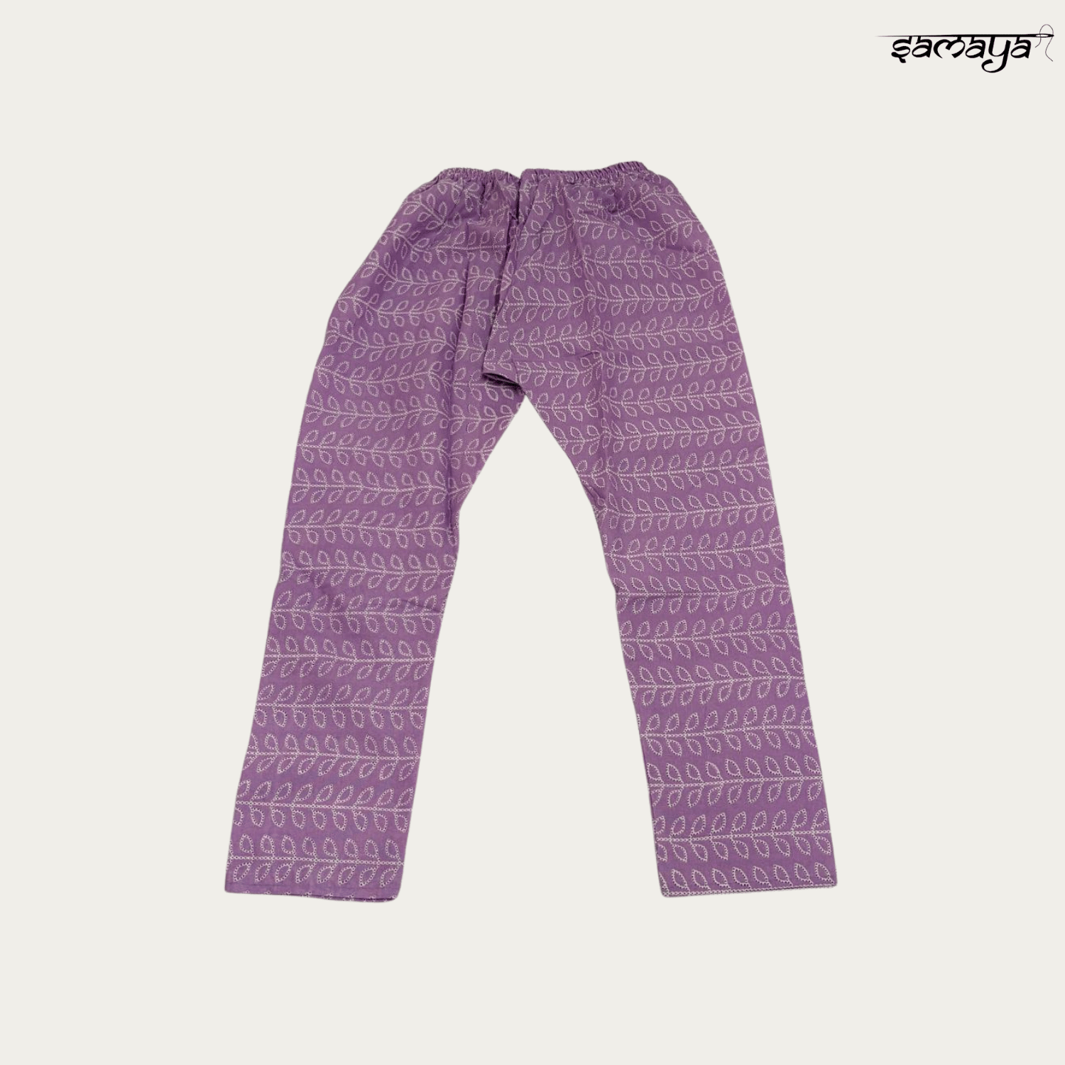 Purple Leaf Printed Cotton Kurti Set Office Daily Wear