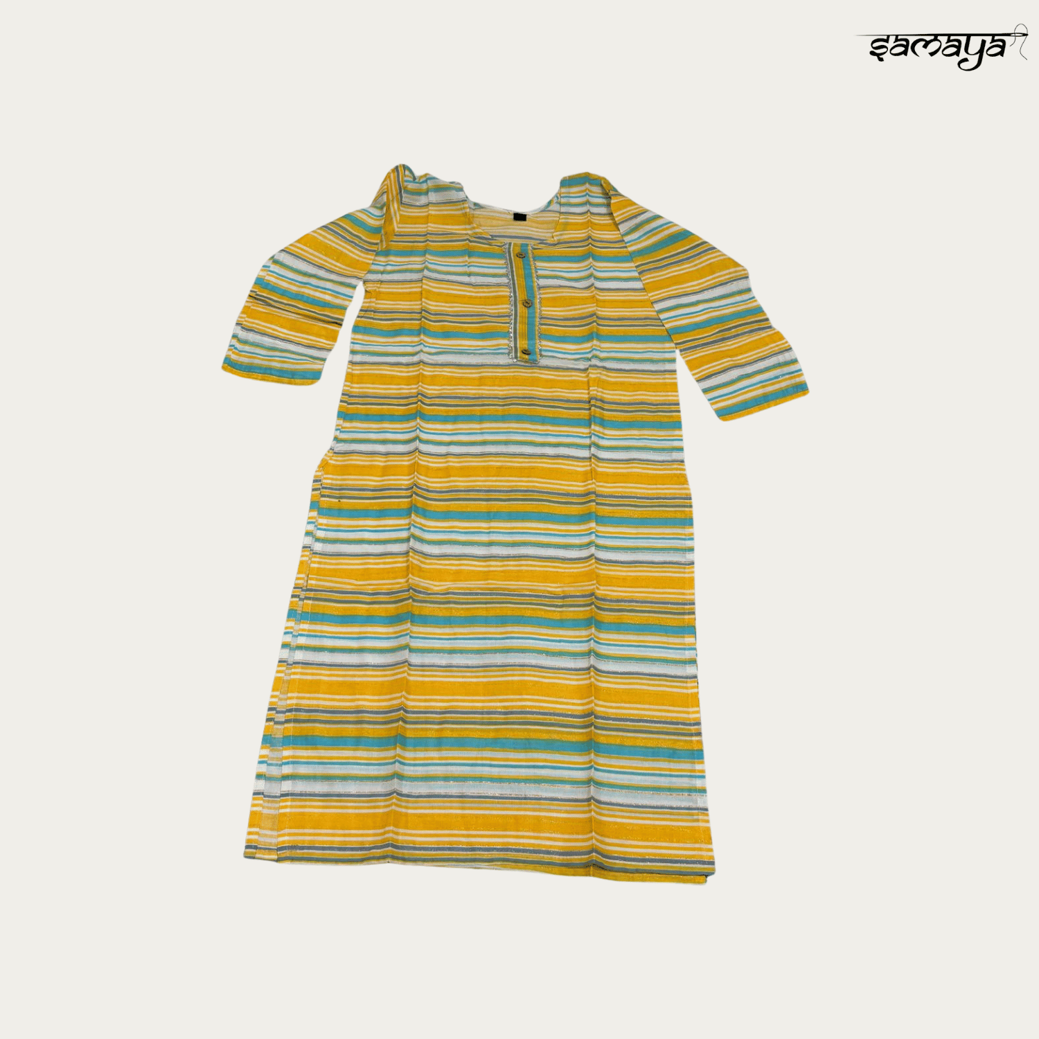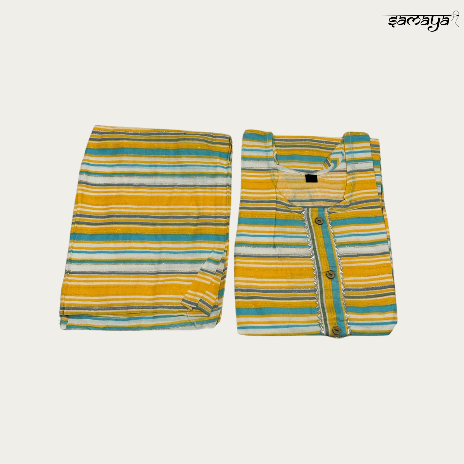 Mustard Striped Cotton Kurti Set Office Daily Wear
