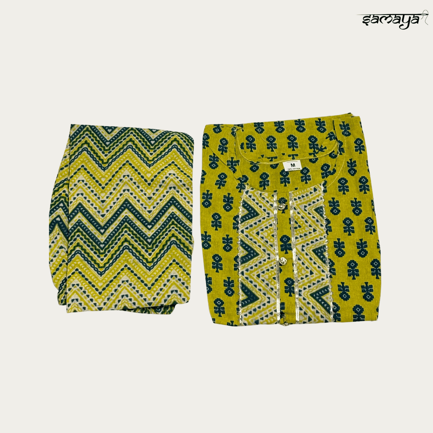 Yellow Printed Cotton Kurti Set Office Daily Wear