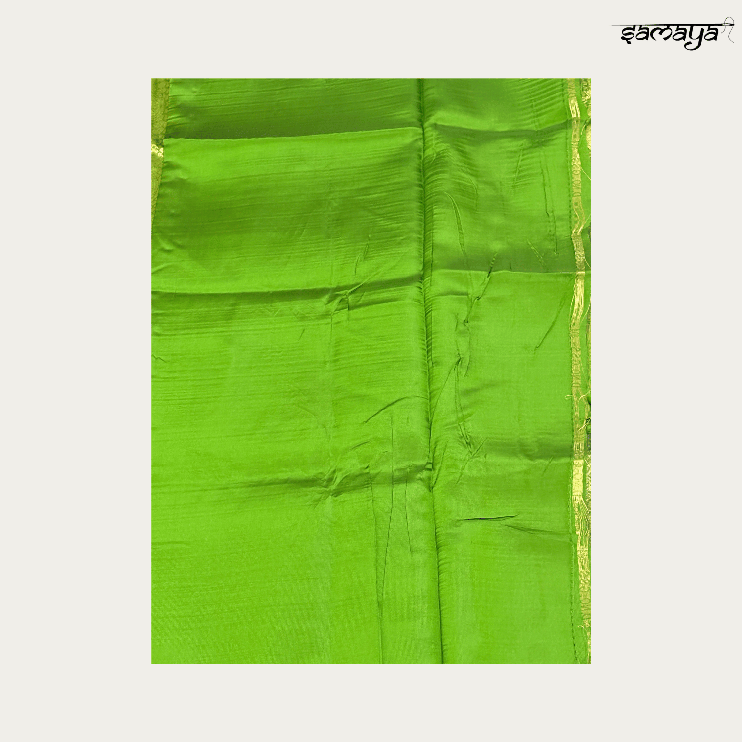 Lime Green Soft Silk Saree with Orange Zari Border for Wedding