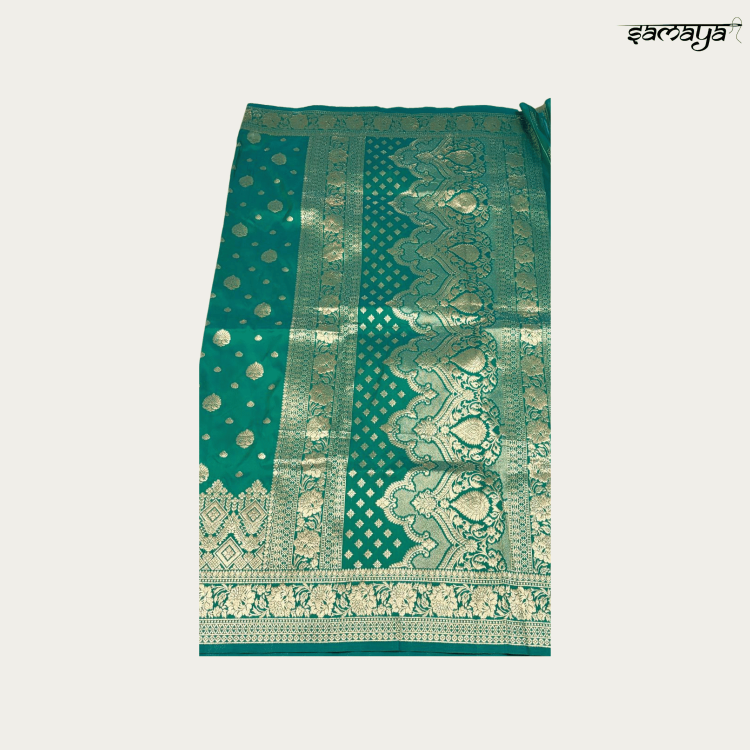 | Work Type | Gold Zari Butta & Geometric Border |
