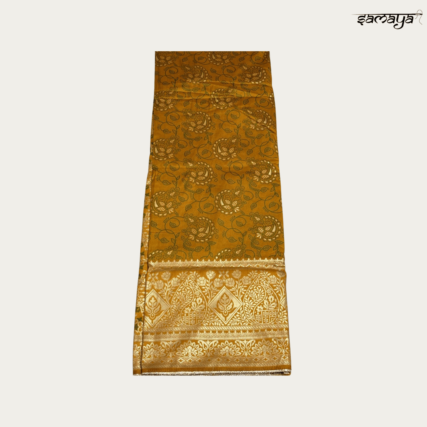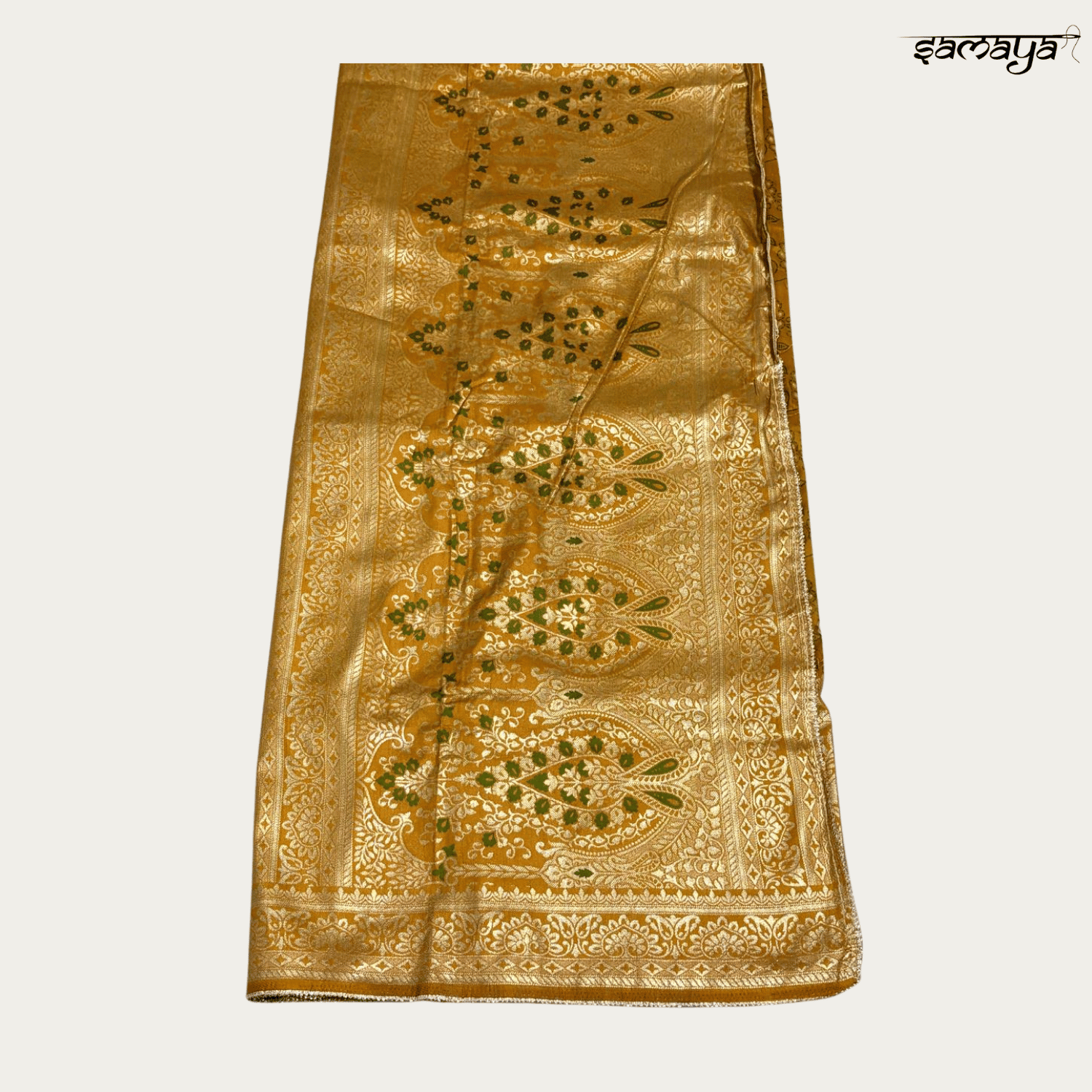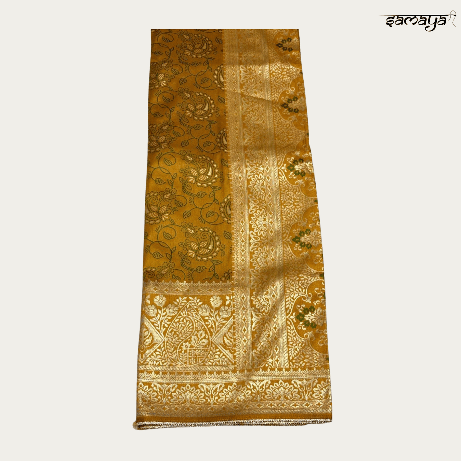 Exude regal charm with this luxurious mustard yellow Banarasi Katan silk saree from Samaya Fashion, designed for weddings and festive celebrations. The vibrant haldi-ready hue combined with opulent gold work makes it a perfect choice for brides, bridesmaids, and wedding guests across all age groups looking for a traditional yet radiant look.