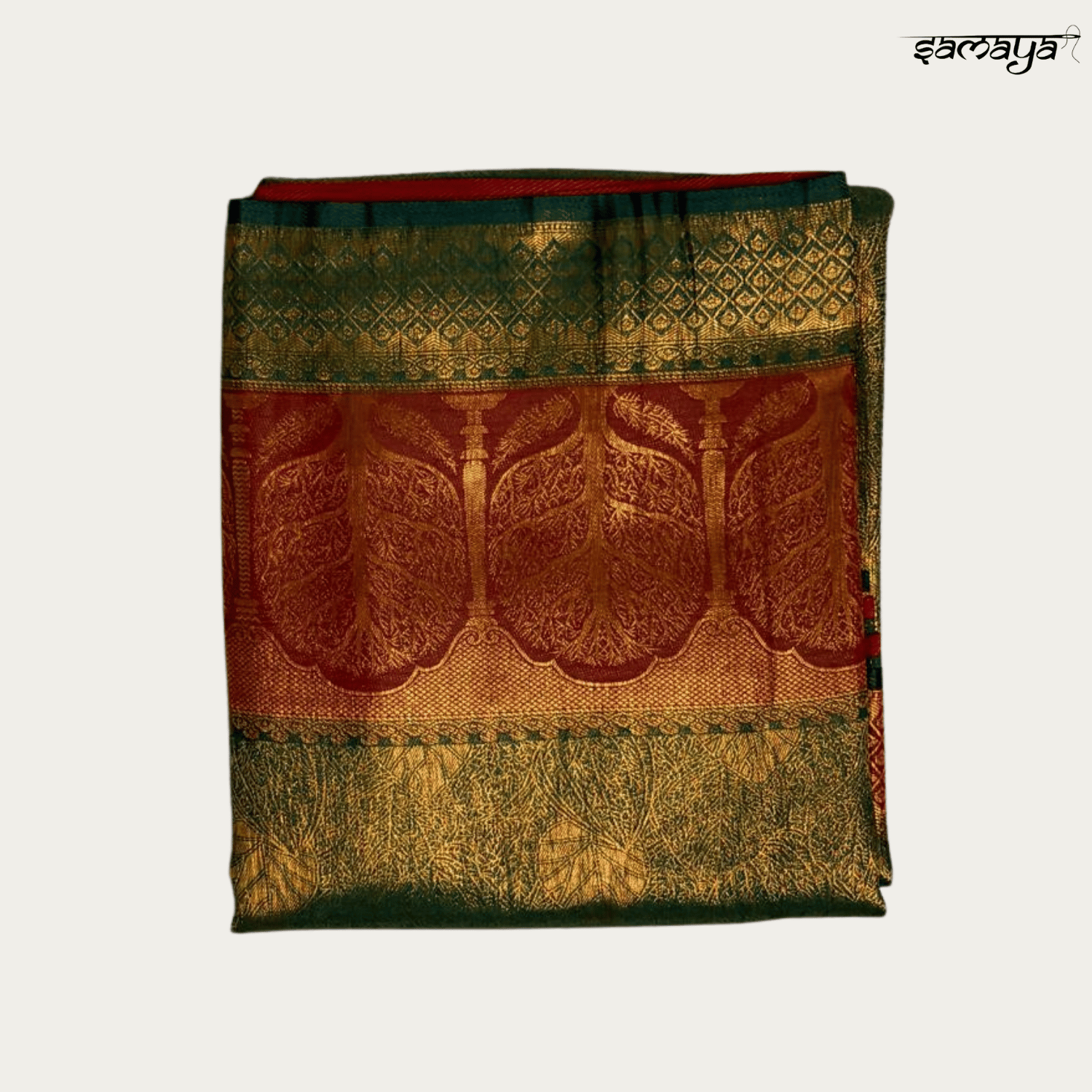 This exquisite green and red soft silk saree from Samaya Fashion is a timeless masterpiece designed for the modern Indian woman who cherishes traditional roots. The classic combination of a lush bottle green body with a vibrant rust-red border makes it a versatile choice for women of all ages, from young bridesmaids to graceful matriarchs. Whether you are attending a close family wedding, a festive puja, or a grand reception, this saree ensures you look regal and sophisticated without compromising on comfort.