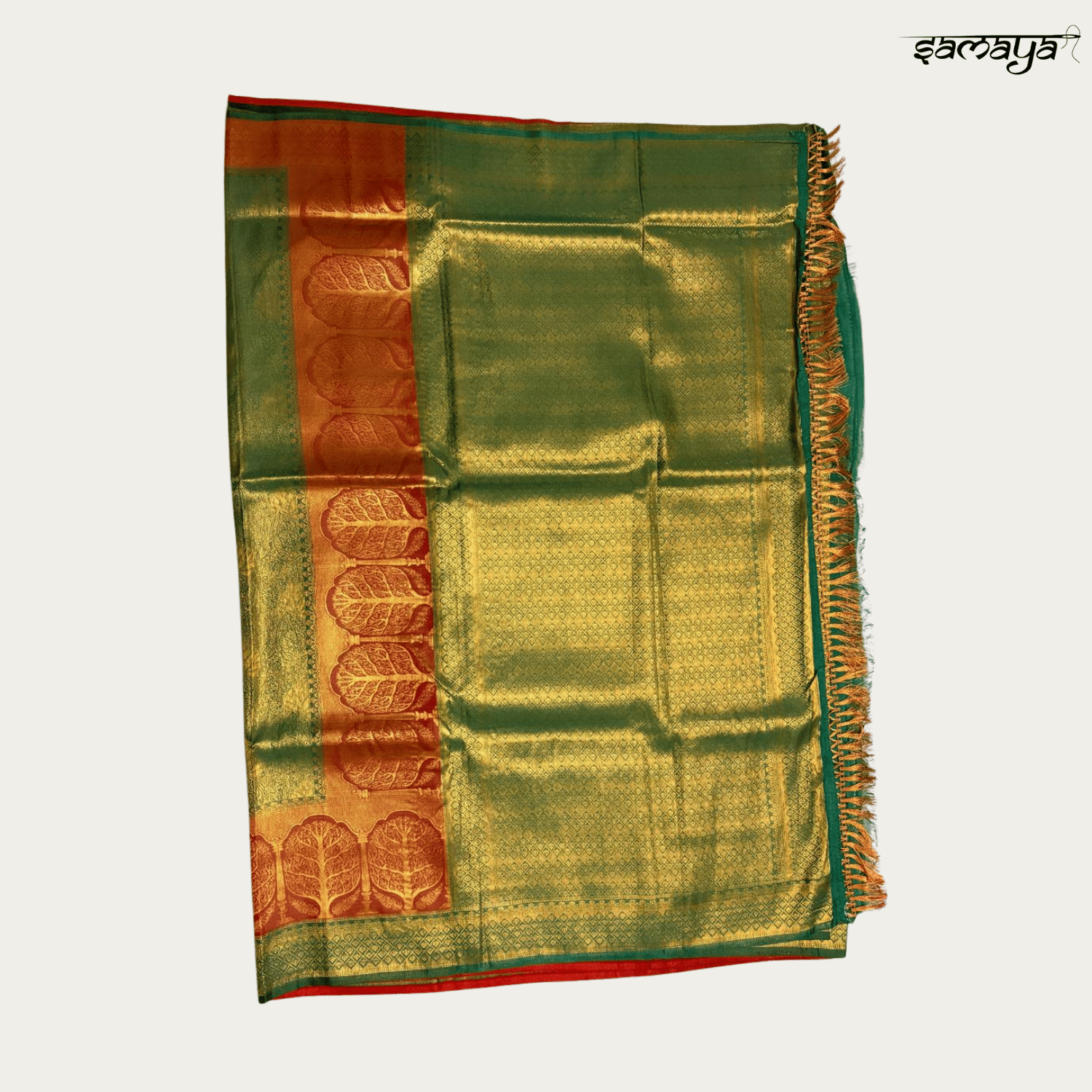 Green Red Soft Silk Saree with Gold Zari for Wedding Wear