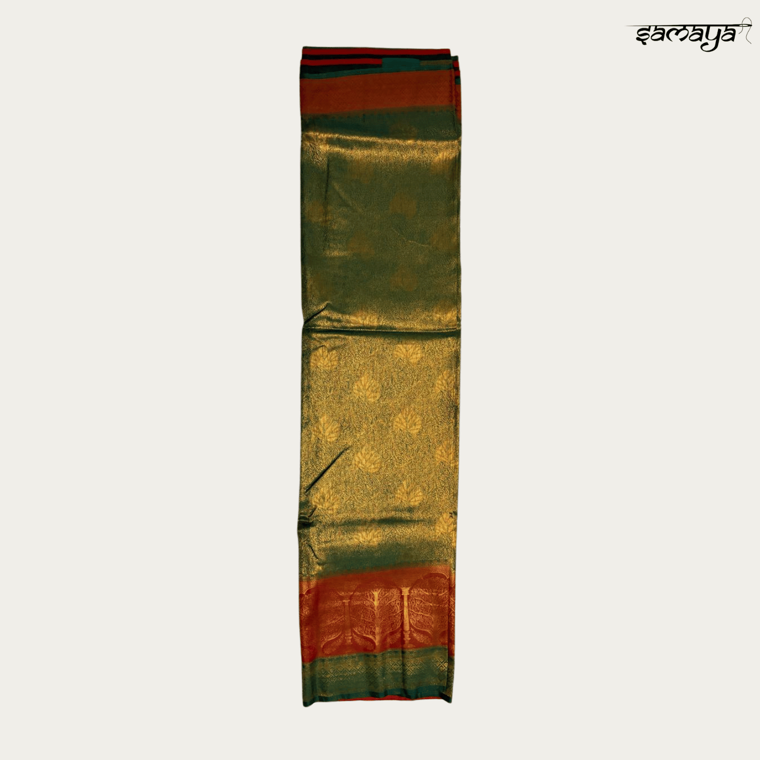 Bottle Green Banarasi Soft Silk Saree with Gold Zari Floral Buttas