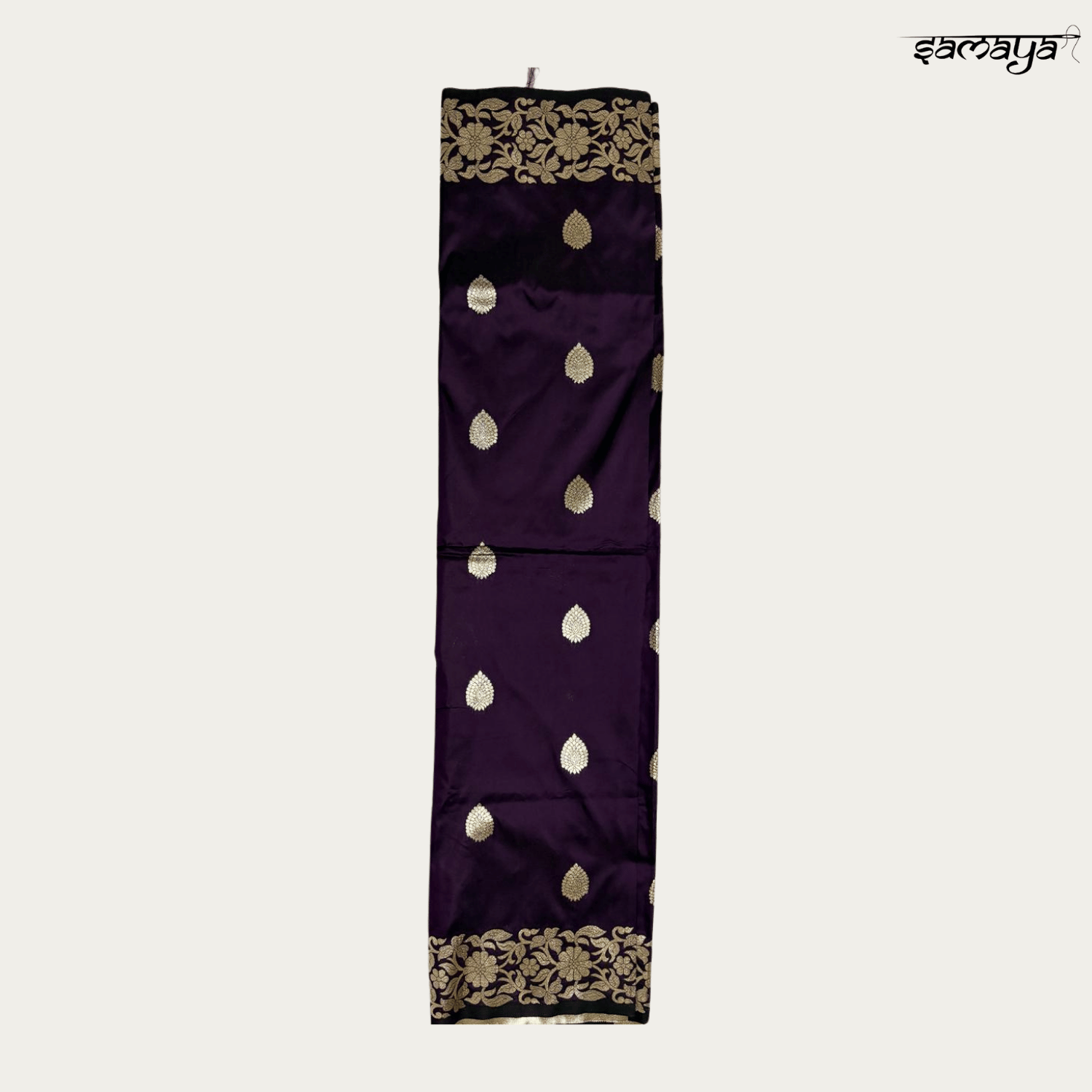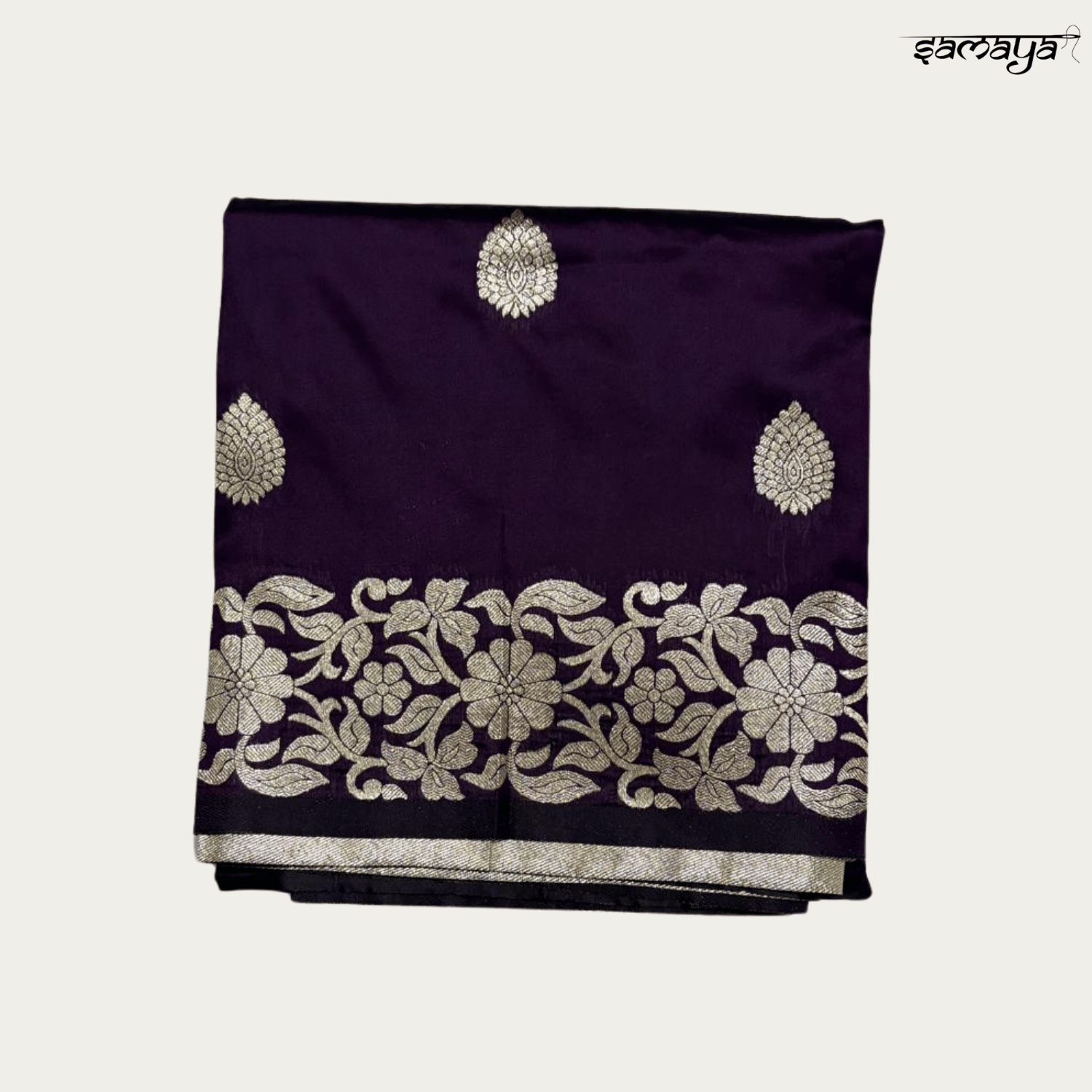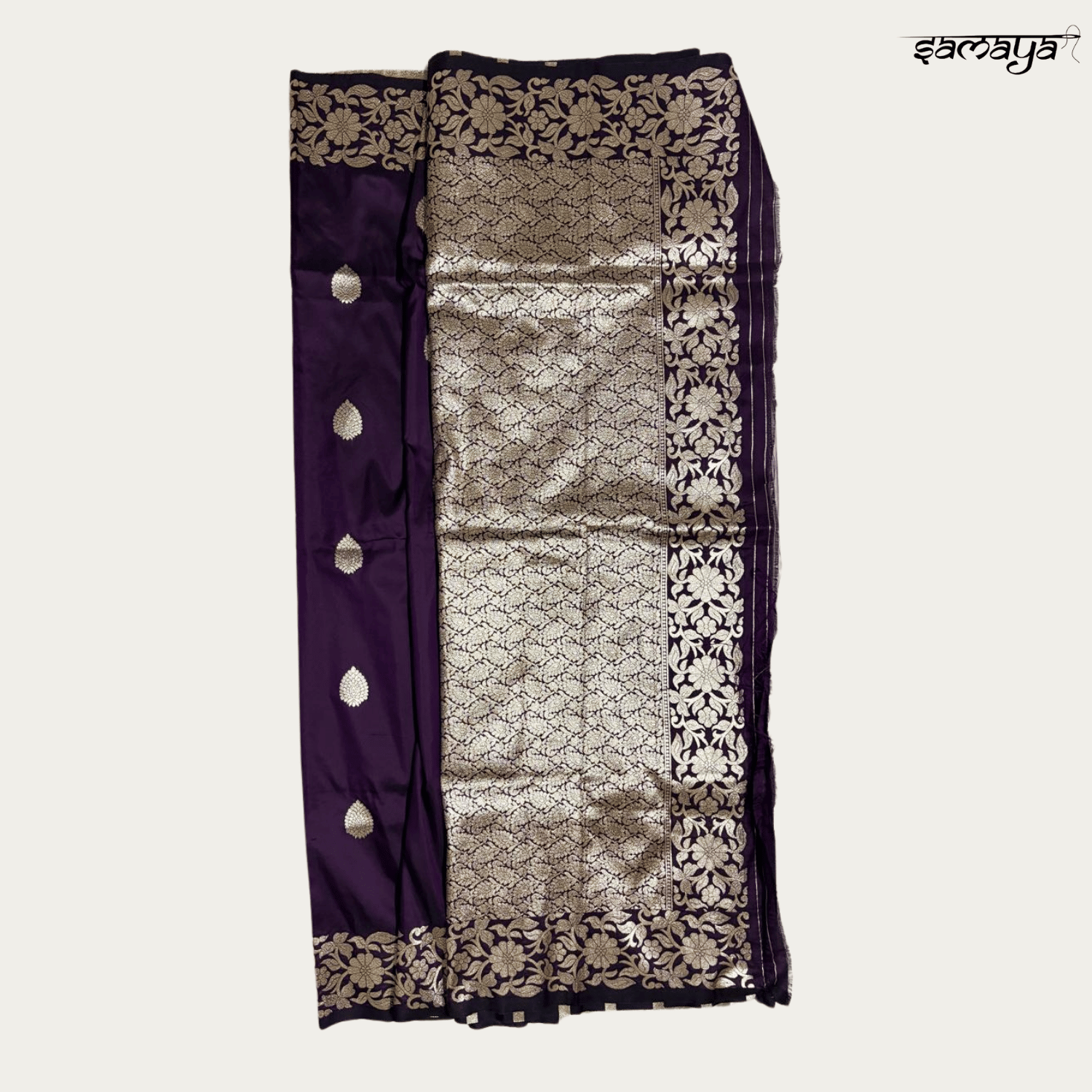 Deep Purple Banarasi Silk Saree with Green Floral Zari Border