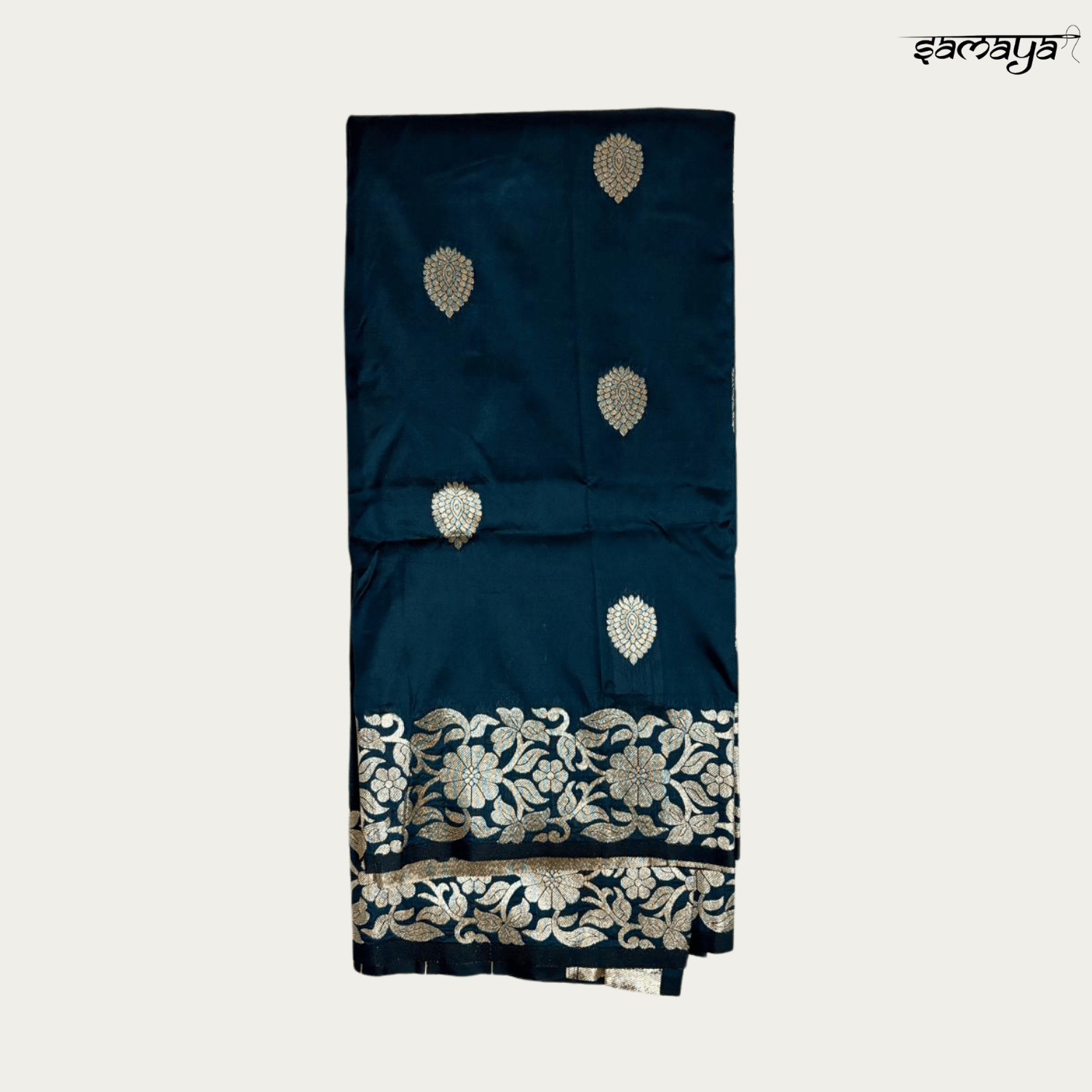 Navy Blue Banarasi Silk Saree Gold Zari Work Festive Wedding