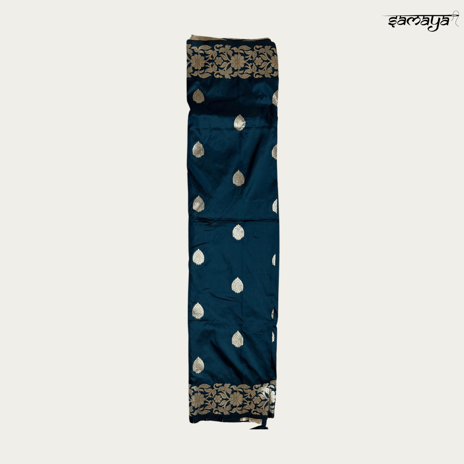 Teal Blue Banarasi Silk Saree with Gold Zari for Wedding Wear