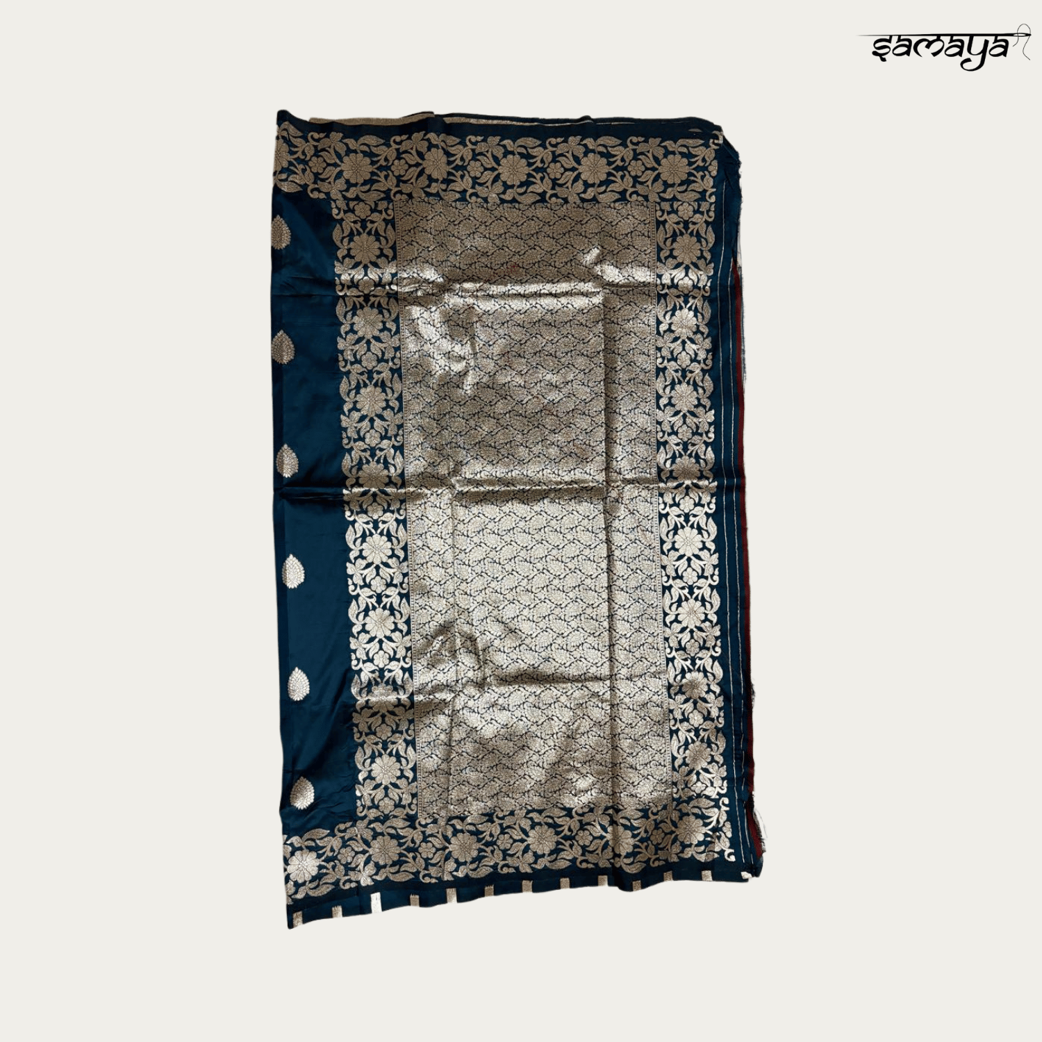 Teal Blue Banarasi Silk Saree Gold Zari Weaving Festive Wedding