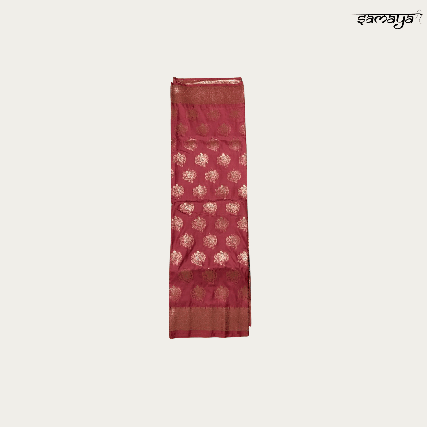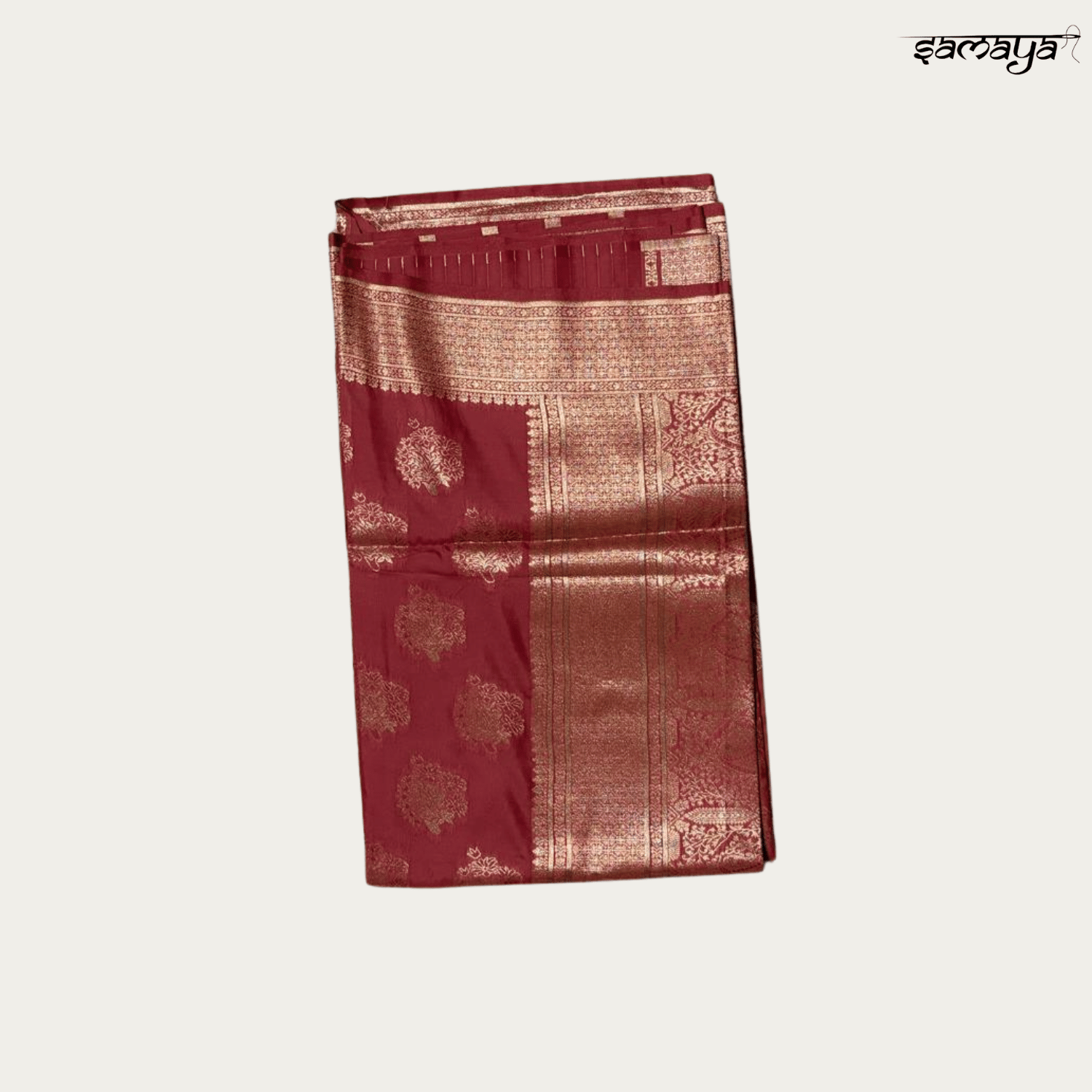 Deep Maroon Banarasi Soft Silk Saree with Gold Zari Floral Buttas