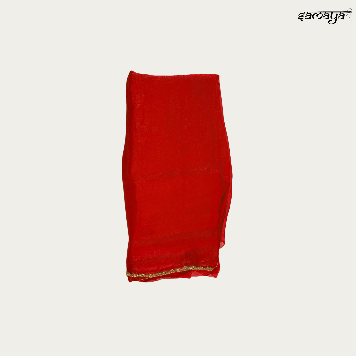 Plain Red Georgette Saree with Gold Lace Border for Party