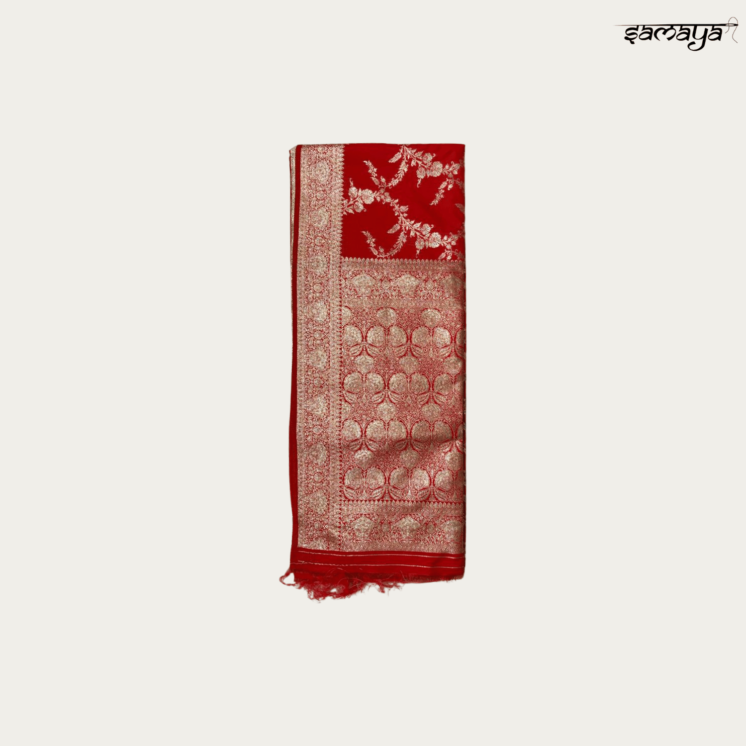 Red Banarasi Silk Saree with Gold Zari Work for Wedding