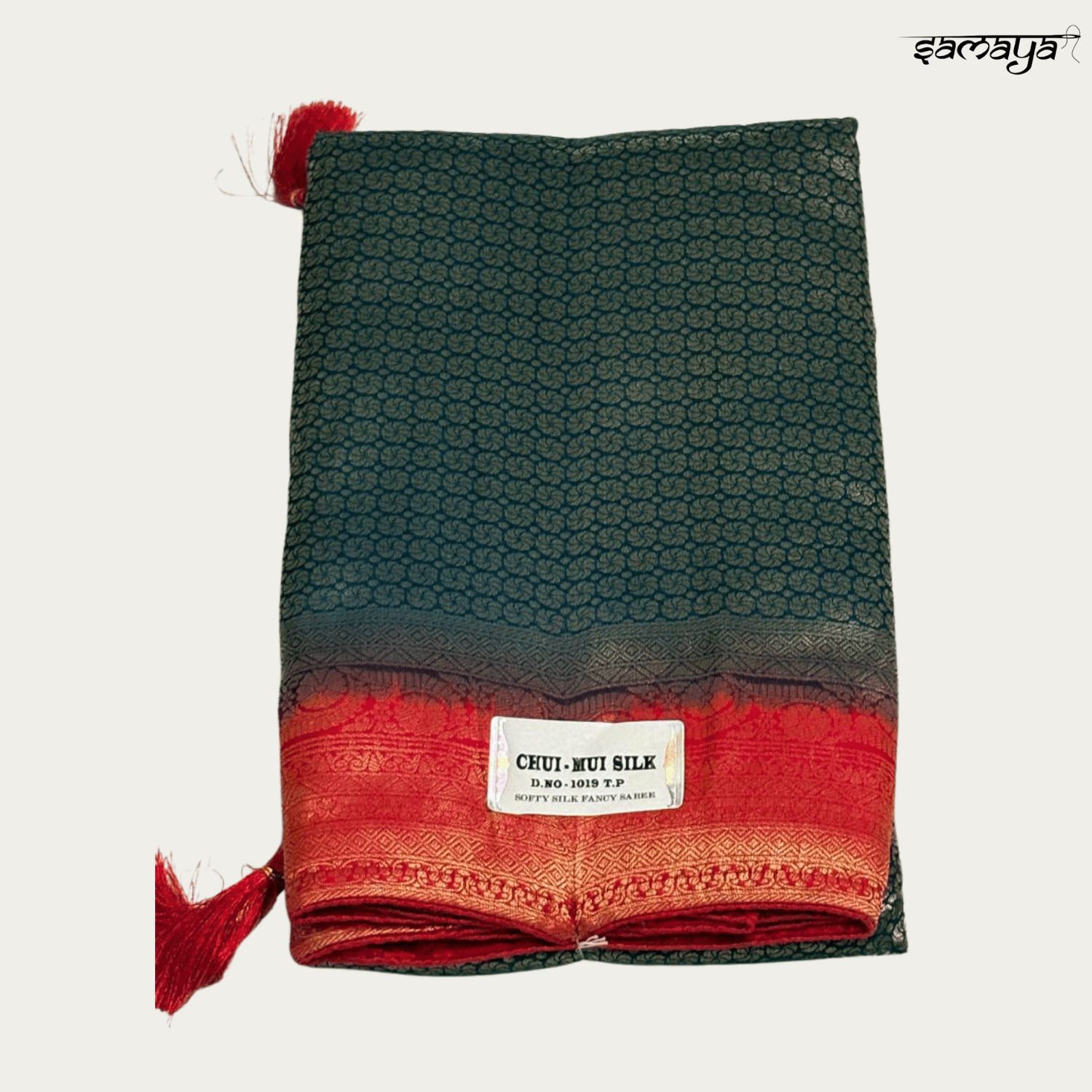 Green Red Soft Silk Saree with Gold Zari for Wedding Wear