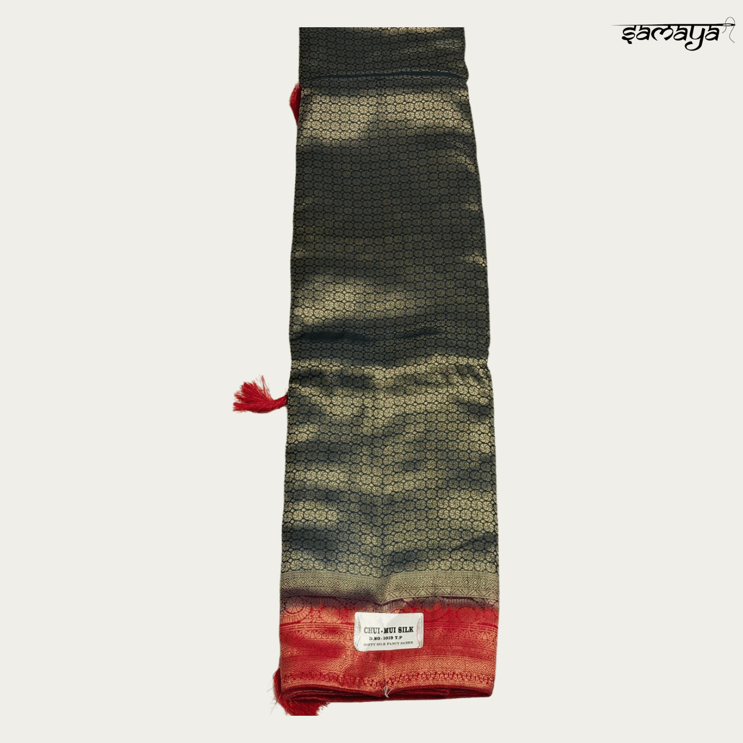 Black Banarasi Silk Saree with Red Border for Wedding Party
