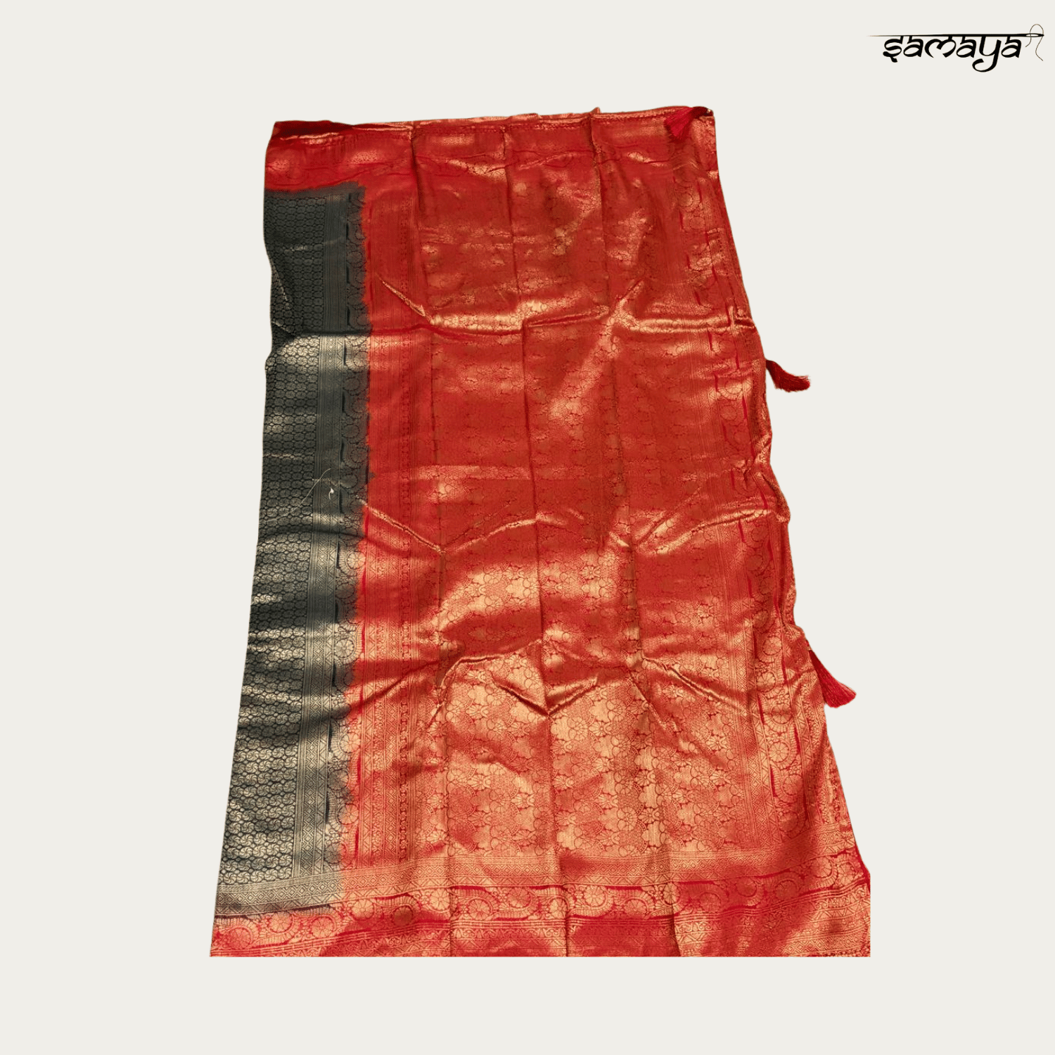 Black Soft Silk Saree with Orange Red Zari Border for Weddings
