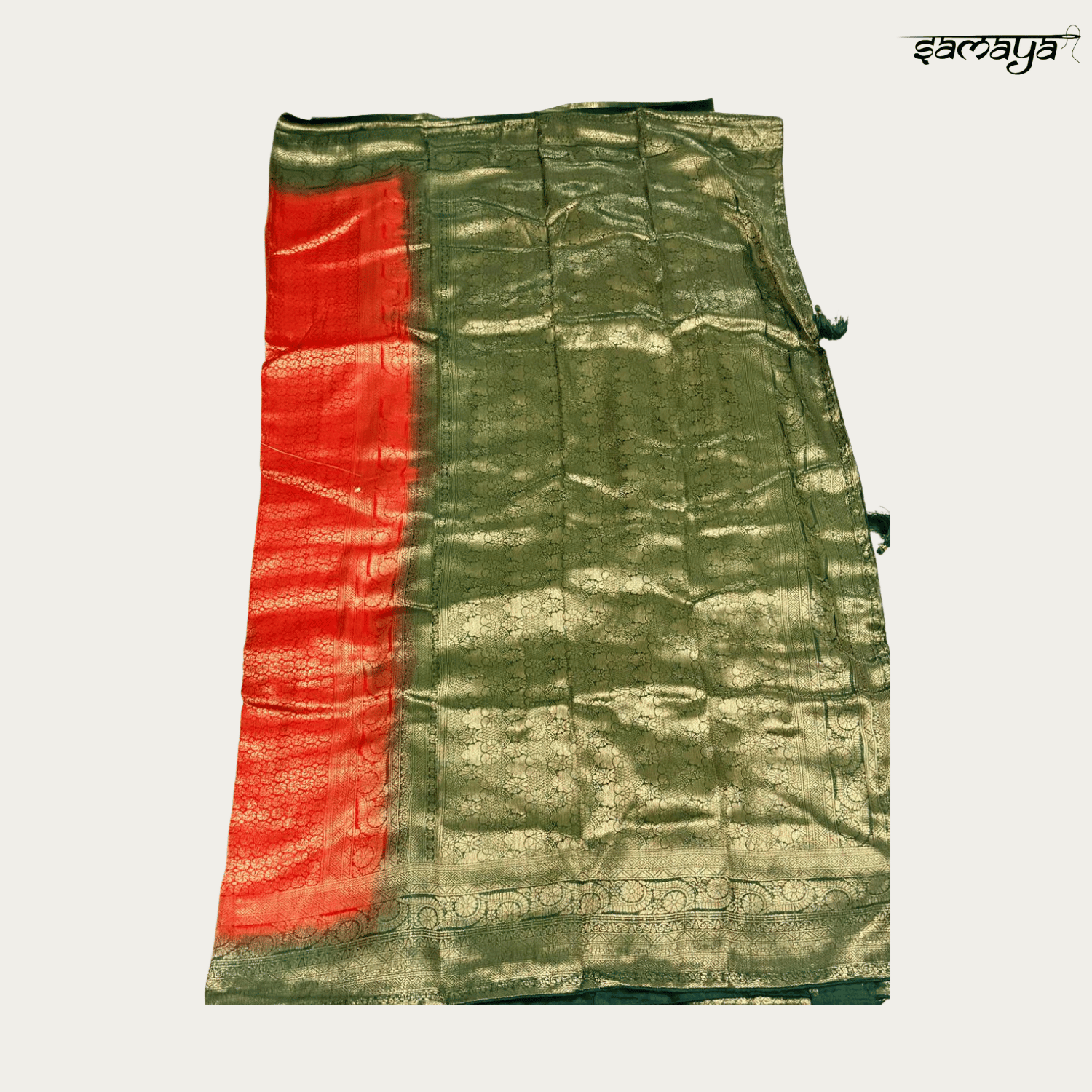 Contrast olive green border with traditional zari work