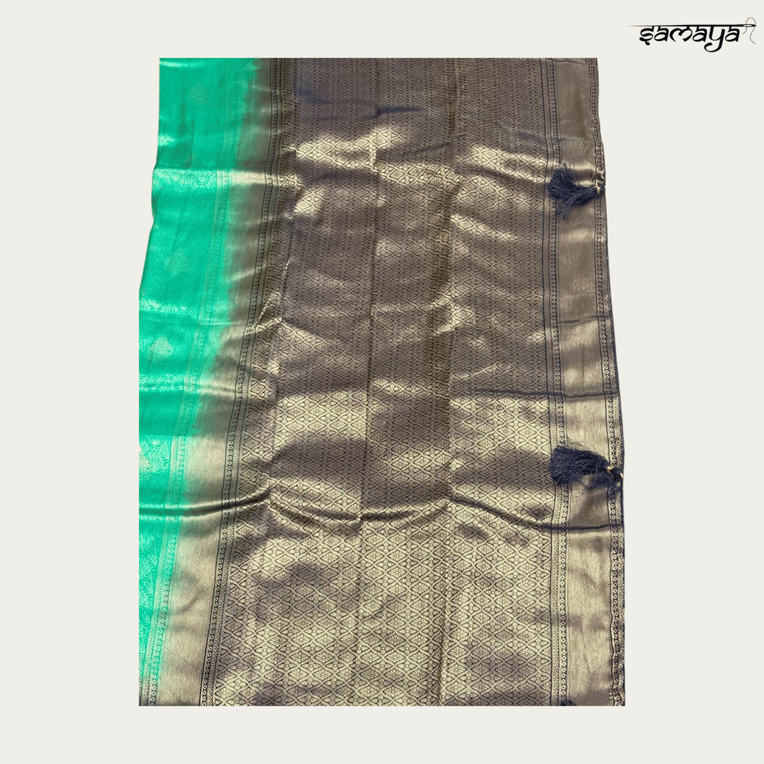 Sea Green Banarasi Soft Silk Saree with Gold Zari Floral Vines