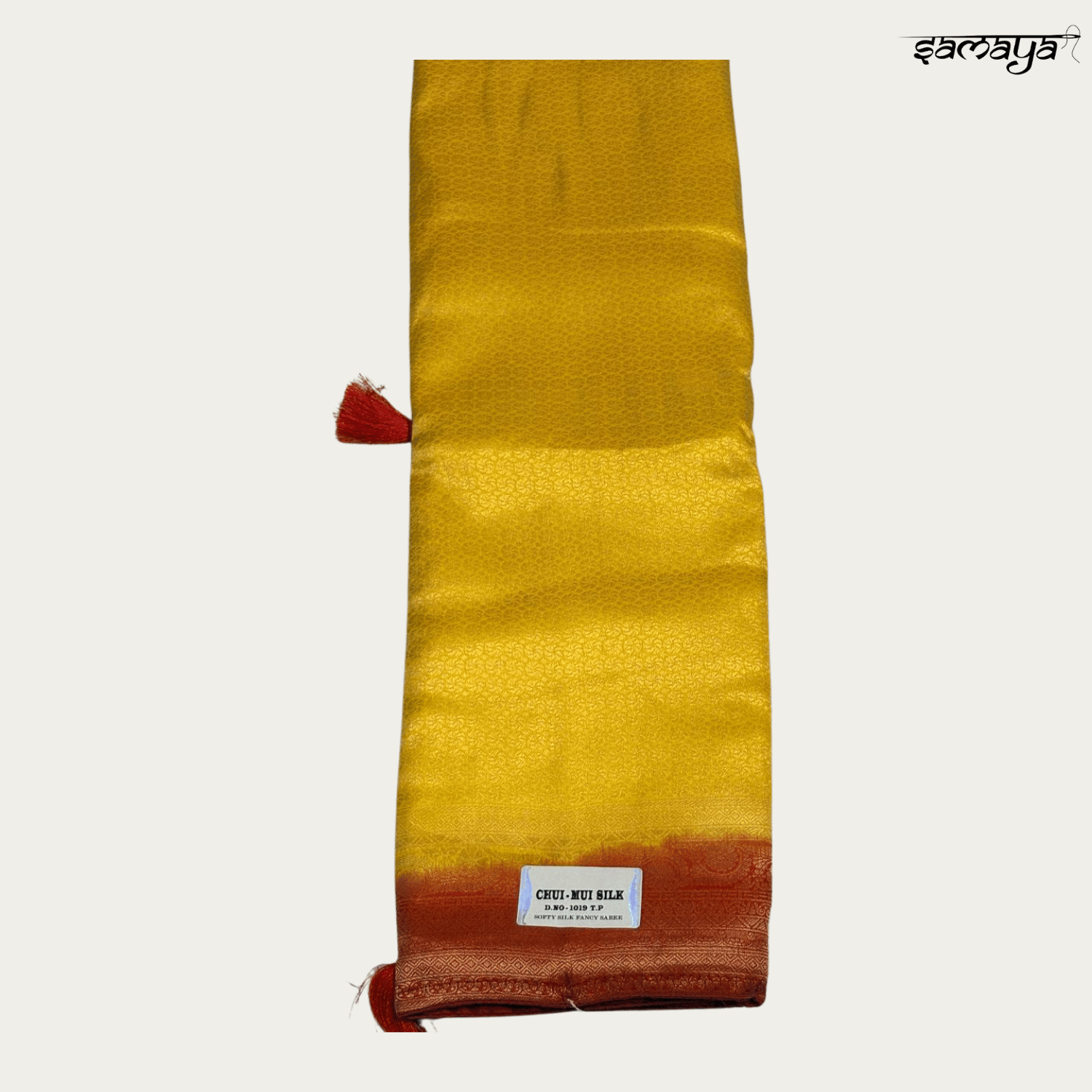 Mustard Yellow Banarasi Silk Saree with Red Border for Wedding