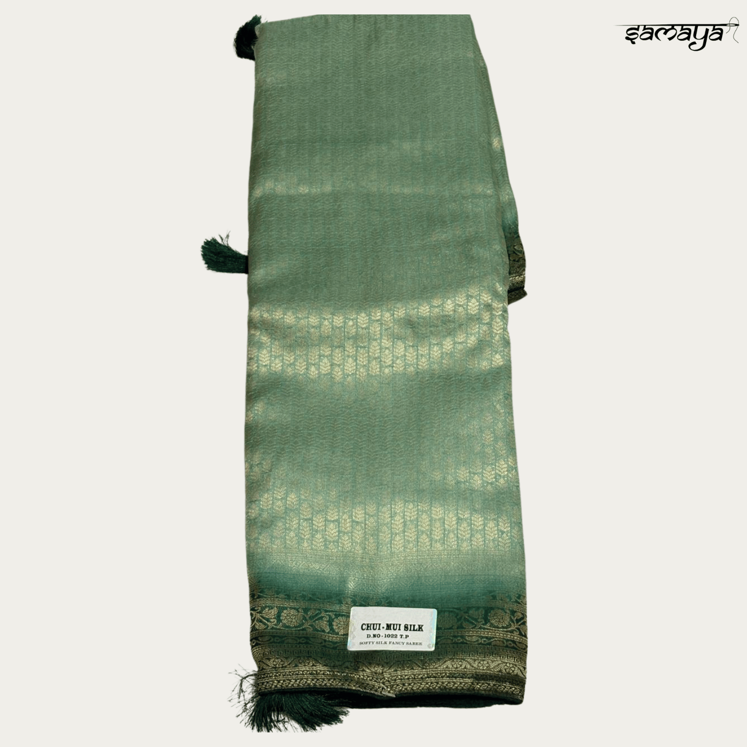 Pista Green Banarasi Soft Silk Saree with Gold Zari Floral Jaal