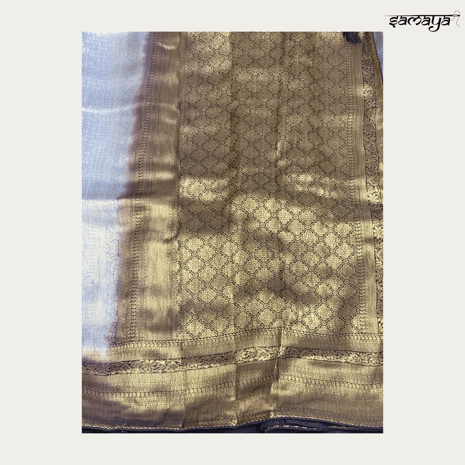 Powder Blue Banarasi Katan Silk Saree with Gold Zari Floral Jaal